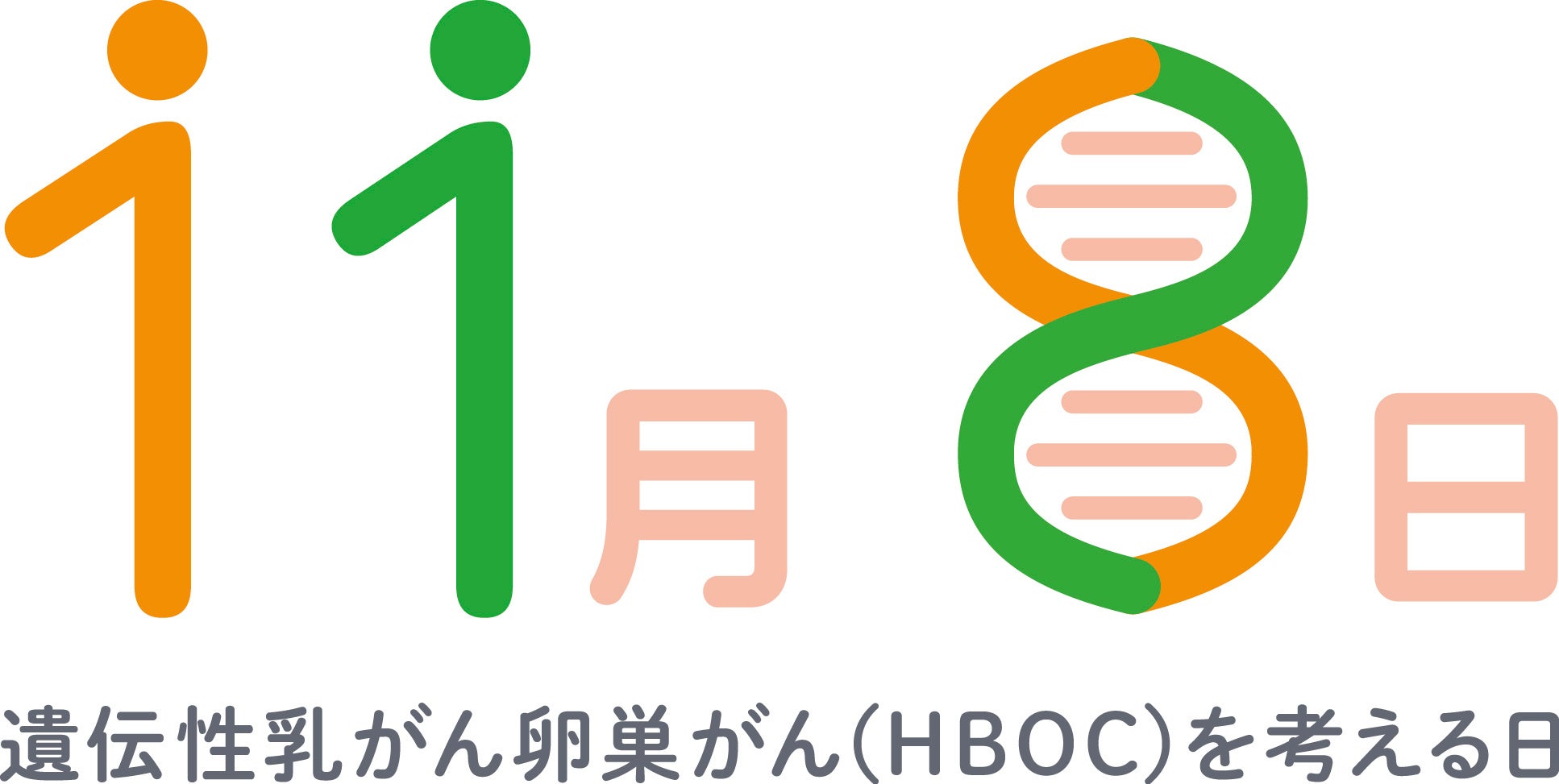 11を両親の姿に、8を両親から受け継いだ遺伝子に見立てて、11月8日を「遺伝性乳がん卵巣がん (HBOC)を考える日」に。より多くの人にHBOCを知ってもらえるように、ロゴはどなたでもダウンロード(https://shiritai-hboc.jp/assets/file/hboc_logo.zip)してお使いいただけます。