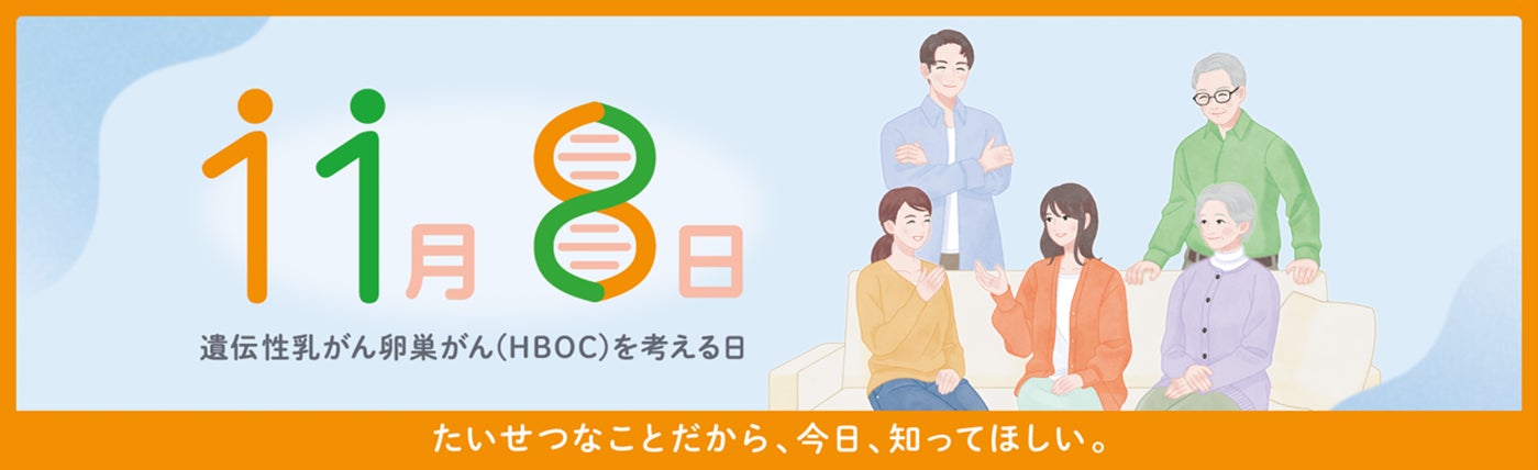 ミリアド・ジェネティクス合同会社 (本社:東京都新宿区 代表:倉岡 俊介、以下「ミリアド・ジェネティクス」) は、乳がんなどの発症リスクが高まる体質「遺伝性乳がん卵巣がん (HBOC: エイチビーオーシー)」のことをより多くの人に知っていただき、また、がんの早期発見につながることを願って、11月8日を「遺伝性乳がん卵巣がん (HBOC) を考える日」に制定しました。