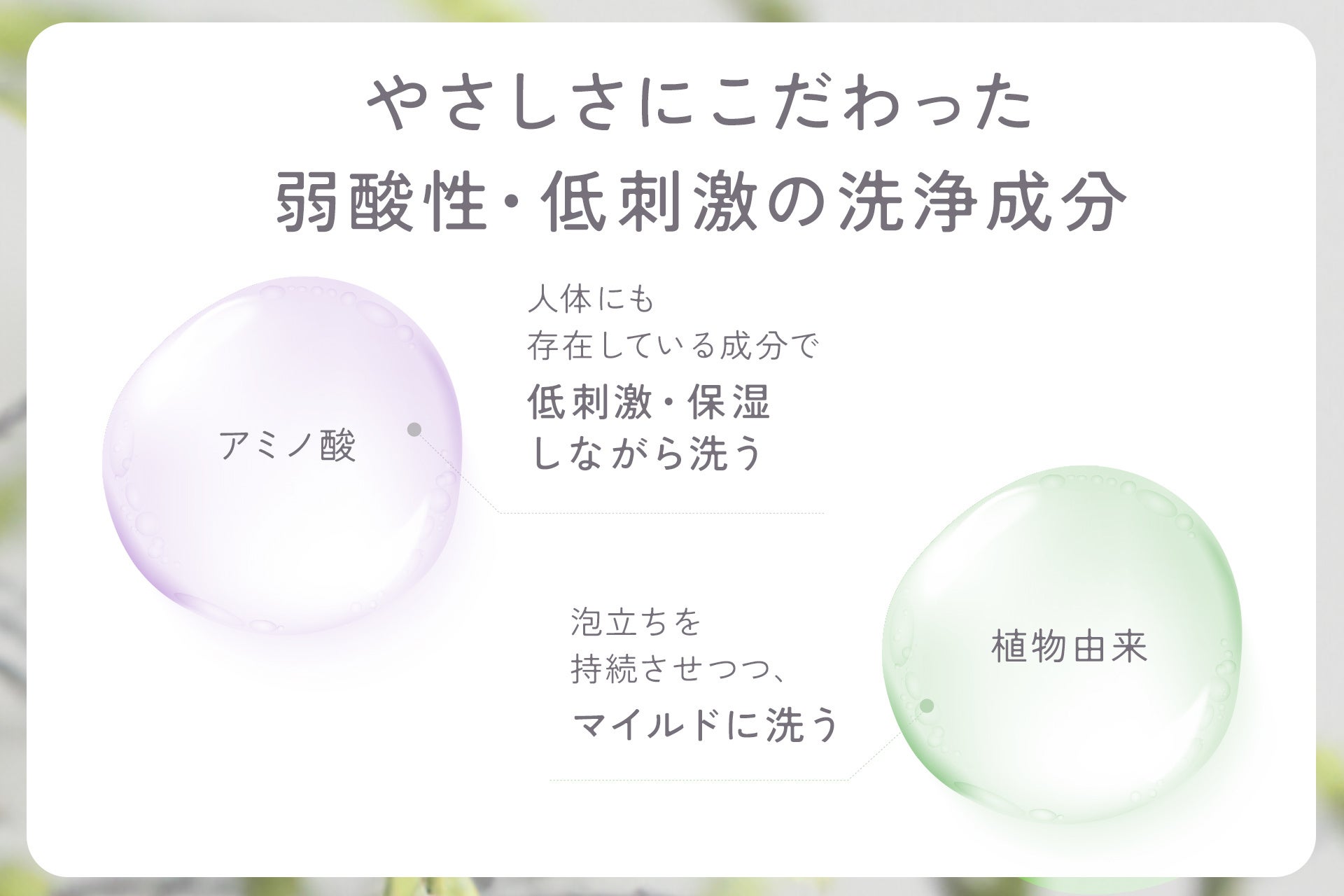 植物由来のアミノ酸系洗浄料を使用し、汚れを落としつつも、マイルドな使用感で繊細なデリケートゾーンの肌環境を保ちます。