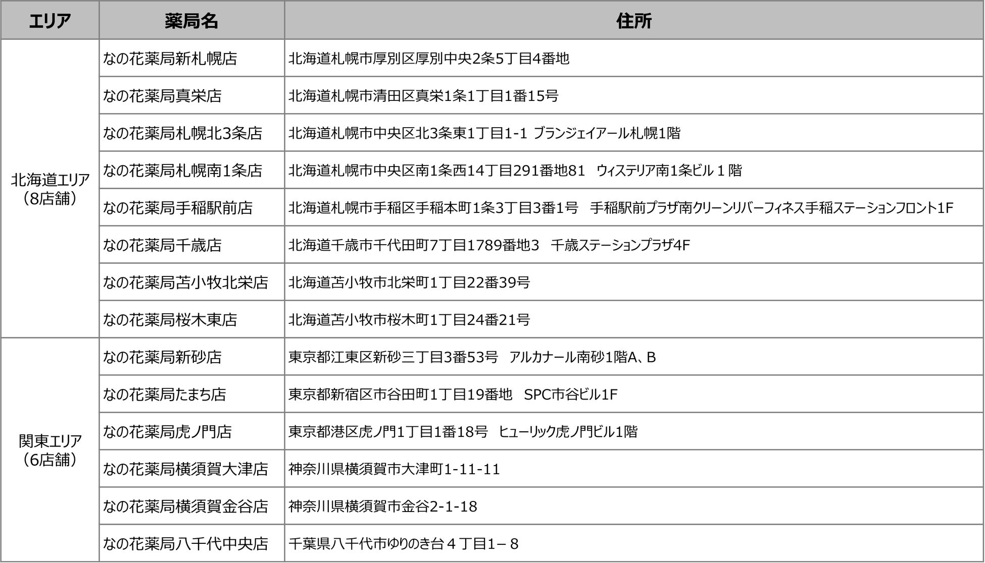 本実証は、北海道エリアと関東エリア 14局の「なの花薬局」で6月21日(金)から順次開始※4します。