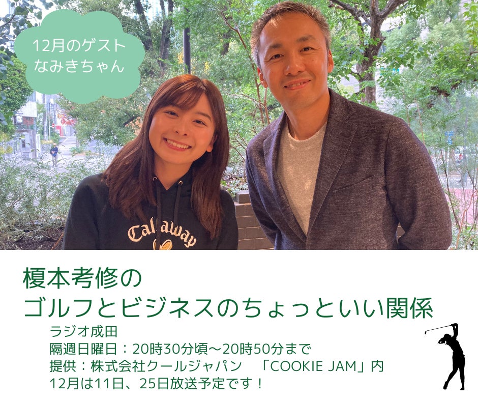 12月の「榎本考修のゴルフとビジネスのちょっといい関係」はゴルフYouTuberのなみきちゃんをゲストに迎えて、なみきちゃんの魅力に迫ります!