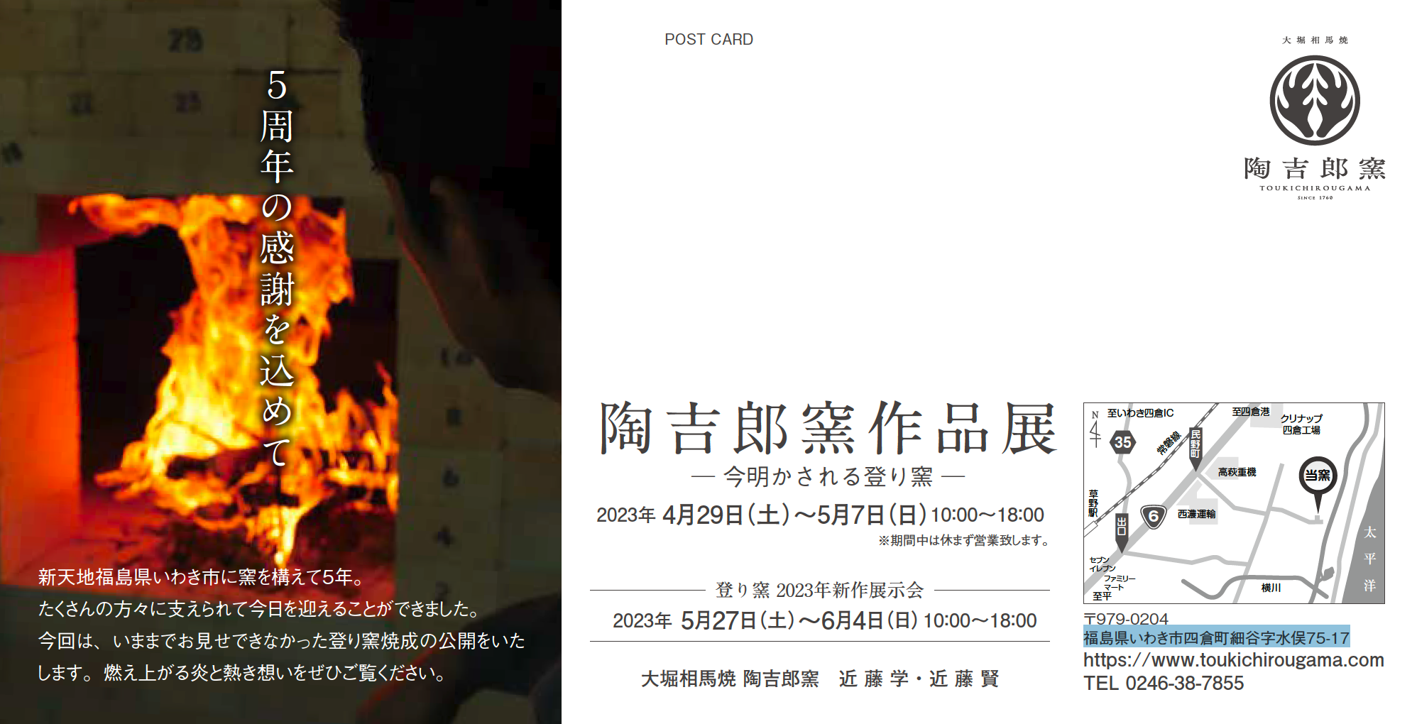 陶吉郎窯近藤学は、2011年3月11日の東日本大震災により生産地の大堀地区から避難を余儀なくされ、いわき市四倉の地で窯を構え直し5周年となりました。