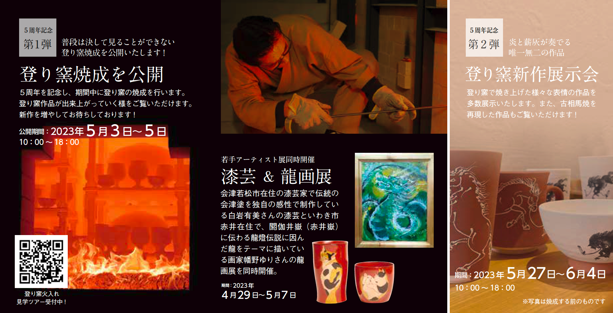 ※登り窯焼成公開日は、上記期間のうち『5月3日〜5日』の3日間です