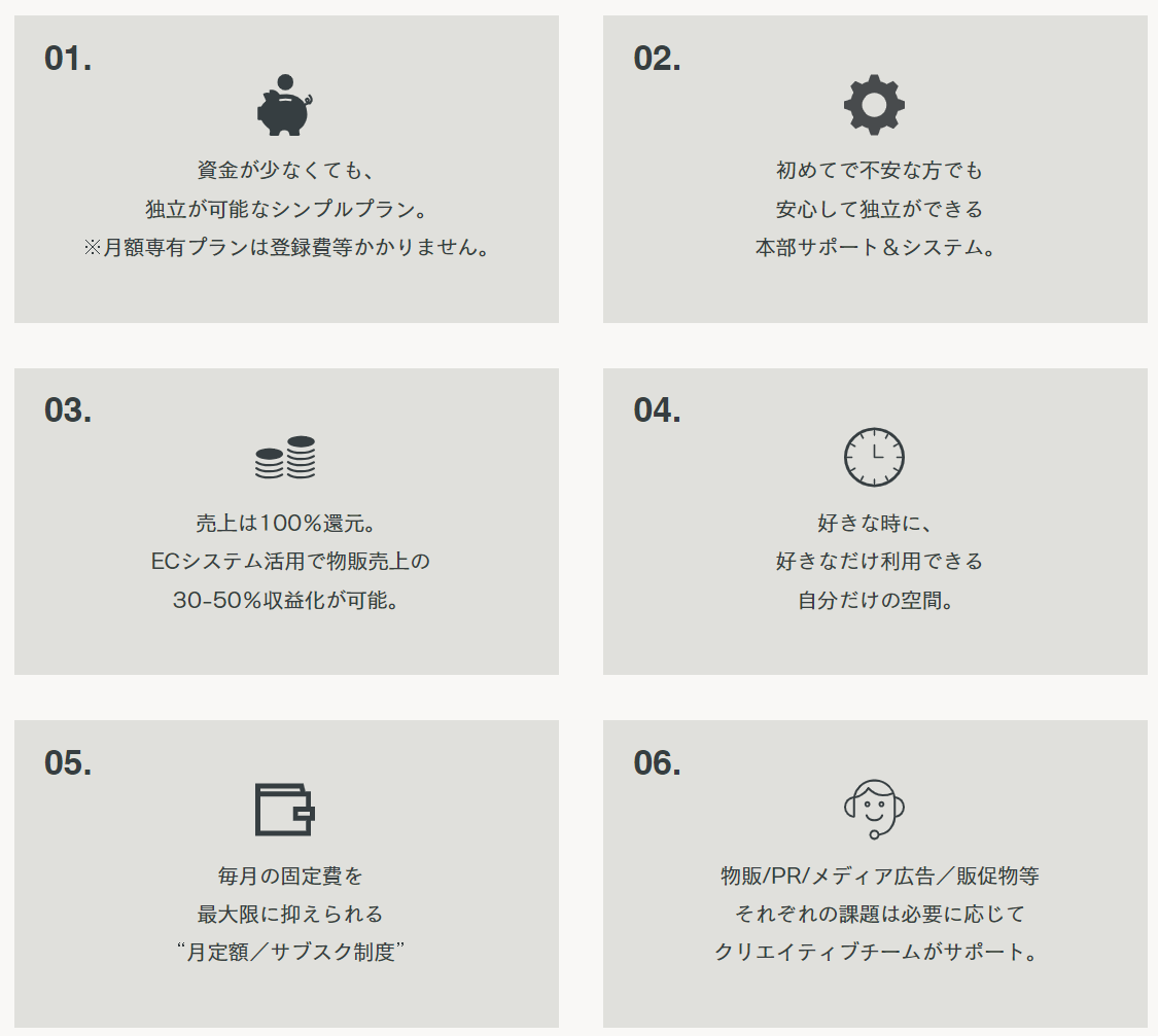 ④美容代理店(サロンビレッジ提携)紹介制度。個人間での商材仕入れ、卸値お取引が可能に。