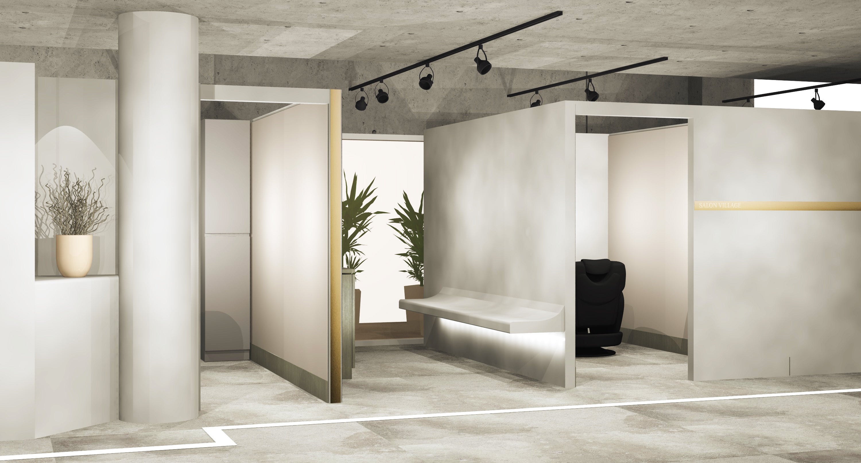現在サロンビレッジに所属している美容師から好評でもある従来のファシリティと洗練されたホテルライクな異空間は残しつつ新しいデザインのサロンビレッジを展開します。