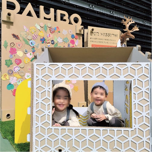 段ボールハウス「DAMBO.LLC」を使用したフォトスポットをご用意。インスタントカメラでお子さまの記念撮影をします。また、段ボールハウスや避難所用の段ボールベッドを体験できます。