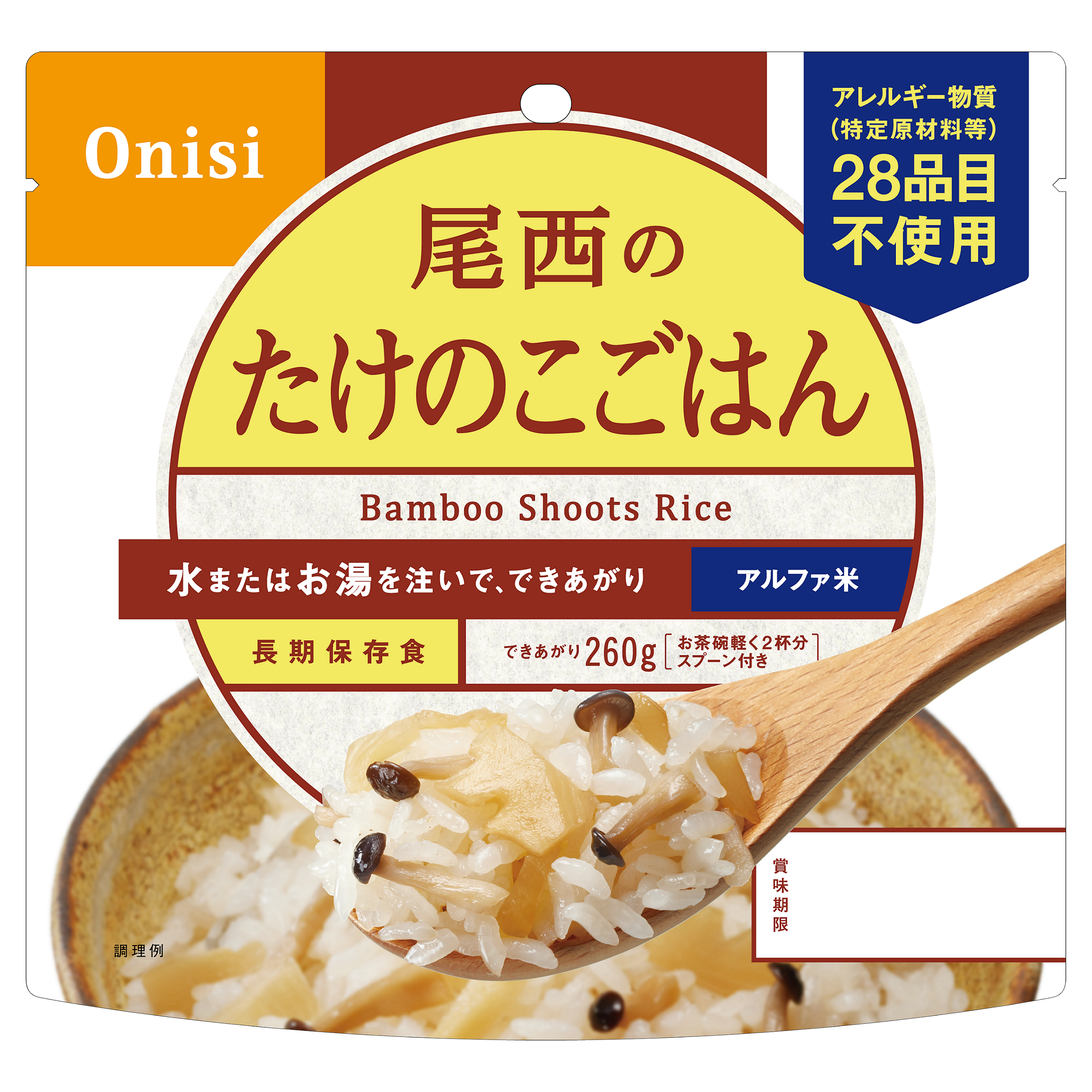 最新非常食の展示、およびアルファ米「たけのこごはん」のサンプルを配布します。