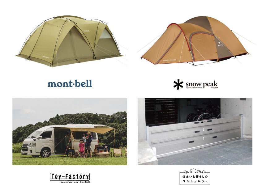「モンベル」による非常時にも使える防災グッズ、「スノーピーク」による小型テントや調理グッズなどの防災グッズ、「トイファクトリー東京」による災害時にシェルターになるキャンピングカー、それぞれを展示。「東急株式会社 住まいと暮らしのコンシェルジュ」による、浸水から建物を守る防水板の相談会を実施します。
