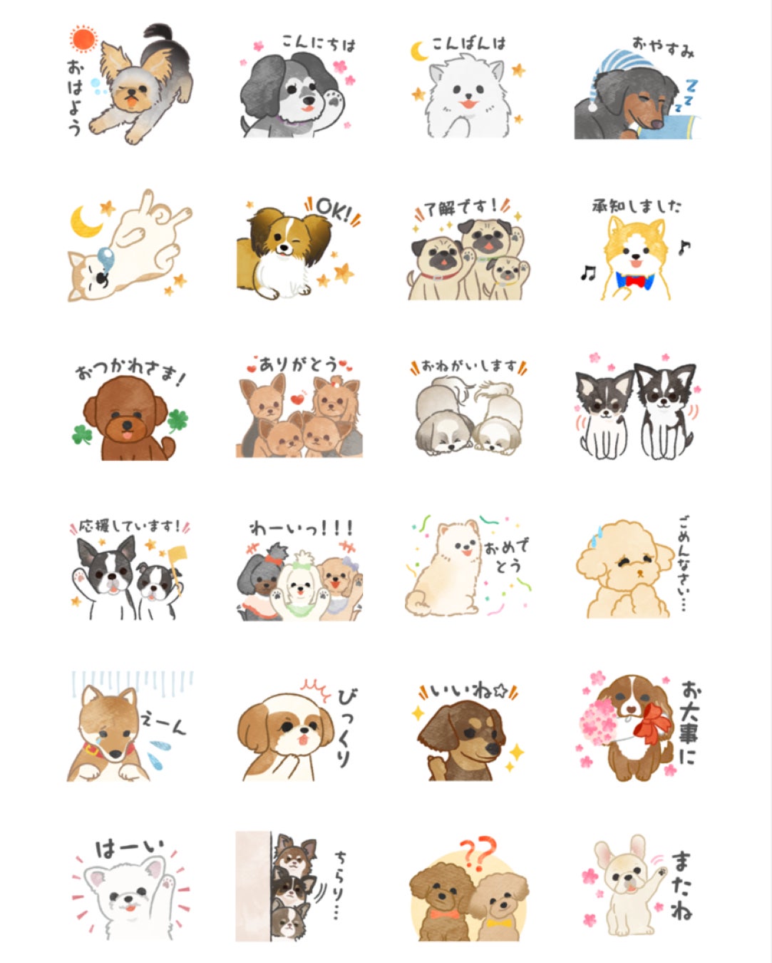 2023年2月15日(水)〜2023年2月21日(火)に弊社公式Instagramにて開催した「わんちゃん似顔絵キャンペーン!Vol.3」に当選した3名様とコノコトトモニアンバサダー1期生と2期生のわんちゃんをモデルにした全24種のスタンプをLINE STOREにて販売いたします。
