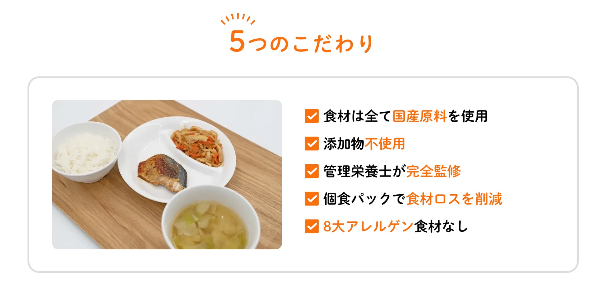調理時間が50%削減される国産カット食材を献立に合わせてお届けします。個食パックで5名分から発注ができます。食材の使用方法などは、保育園で調理経験のある栄養士がサポートしています。