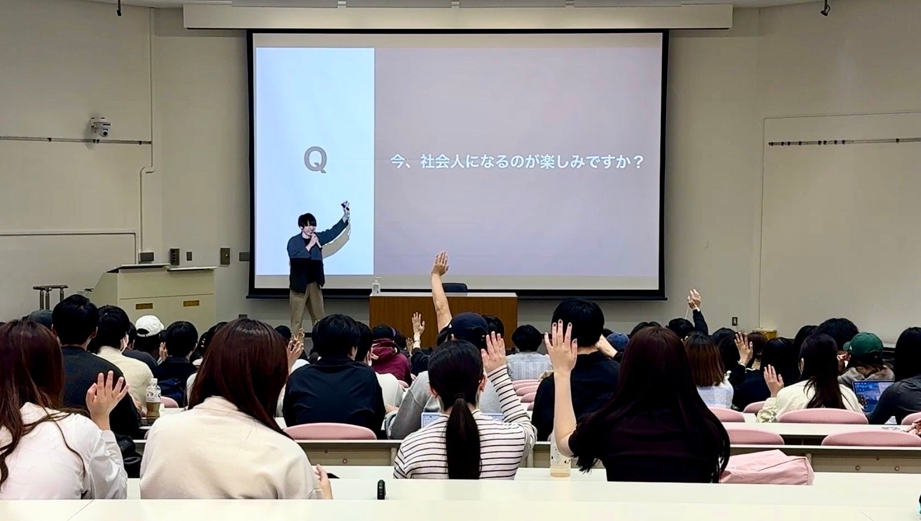 講義の締めくくりでは、「好き」×「得意」×「大事」の3軸が重なったところに本当にやりたいことがあるというメッセージが伝えられ、学生たちに向けて「皆さんの社会人生活が希望に満ちたものになるよう願っています」とエールが送られました。