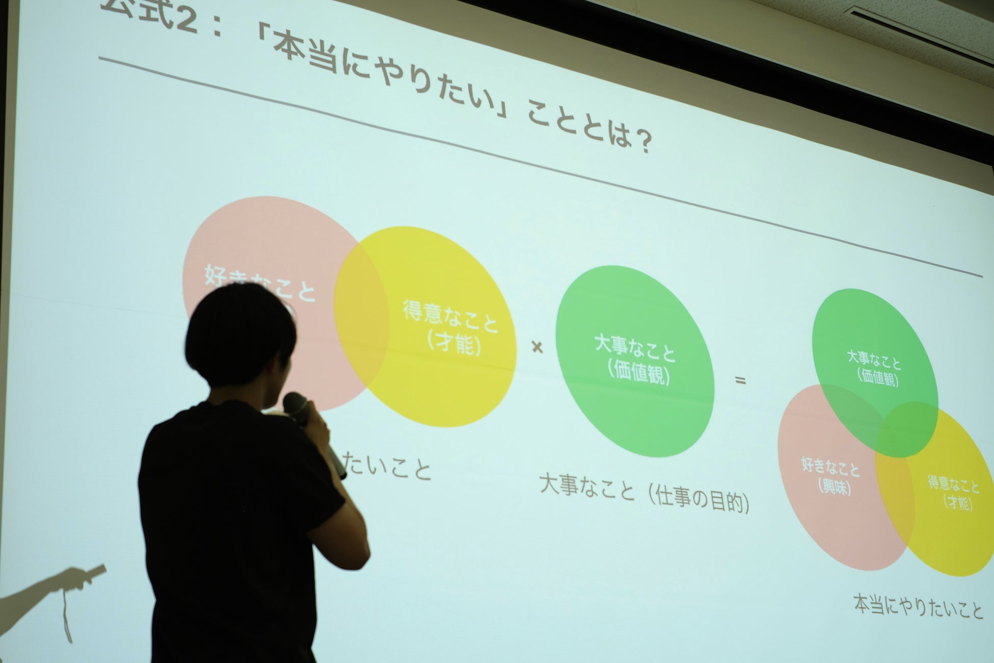 講義のメインは「本当にやりたいこと」を見つけるためのメソッド解説と実践的なワークです。