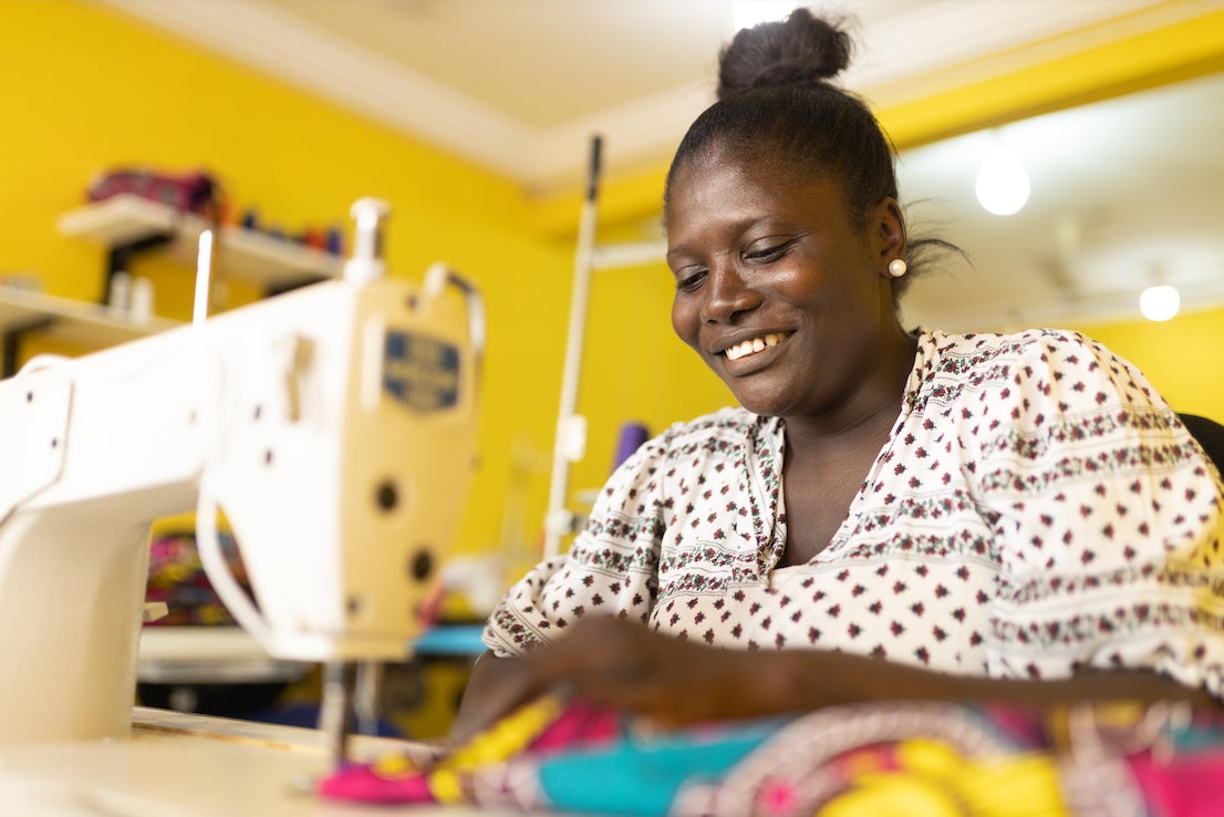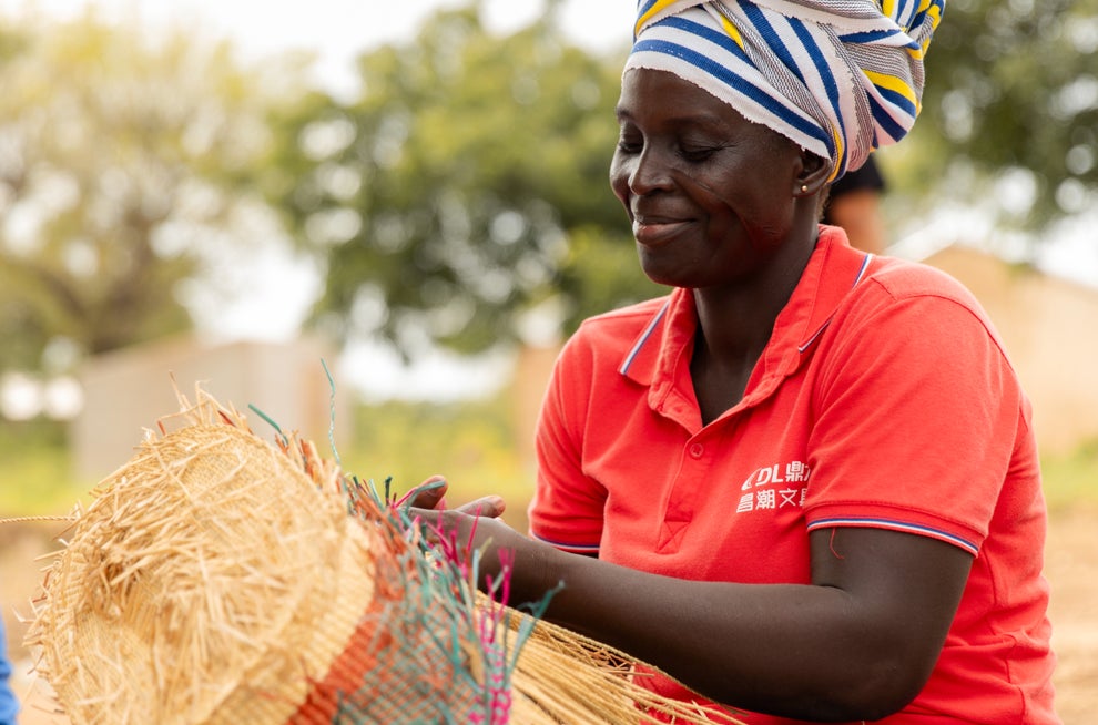 現在、ガーナでは主に女性と障がい者を600名以上雇用し、アフリカンファブリック製品の縫製、手編みバスケットの生産を担ってもらうことで、女性と障がい者の自立を後押ししています。