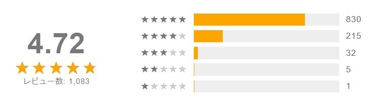 有り難い事に現在では5段階評価中平均スコアは「4.72」で1,000件以上の口コミが集まっております。