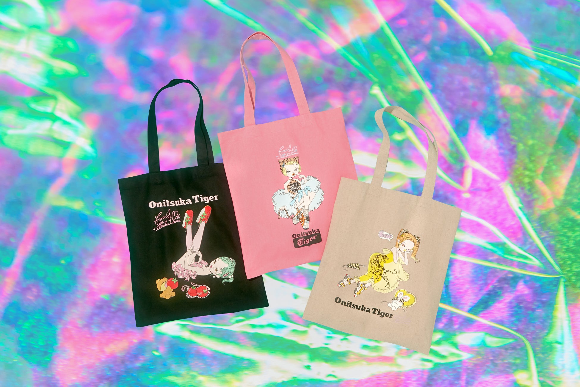 今回、デンマーク、カナダ、上海、ロンドンなど、海外に移り住みながら独学でイラストを始め、現在は東京を拠点に活動しているアーティストのfoxy illustrationsの作品を起用。独自の甘い世界観のなかにオニツカタイガーのDNAが散りばめられたオリジナルキャラクターをプリントしたスペシャルコレクションを展開します。