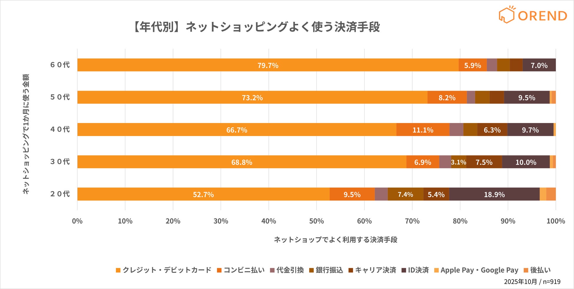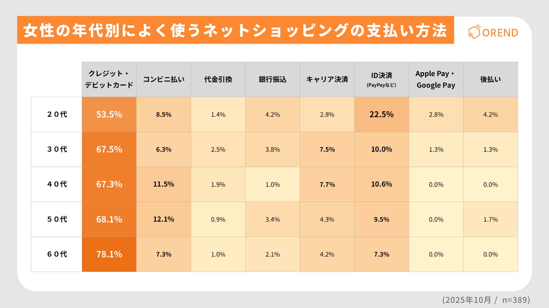 URL:ネットショッピングの支払い方法を年代・男女別に調査|主な決済手段の利用傾向を解説【OREND(オレンド)独自レポート】(URL:https://orend.jp/mag/a0746)