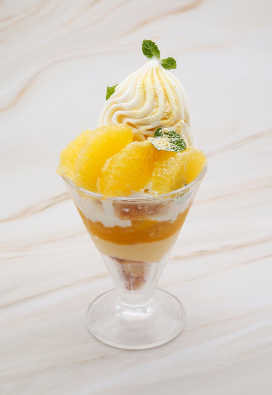 濃厚なミルクジェラートに、フレッシなはっさくの果実やクリームを合わせたボリュームのあるパフェです。