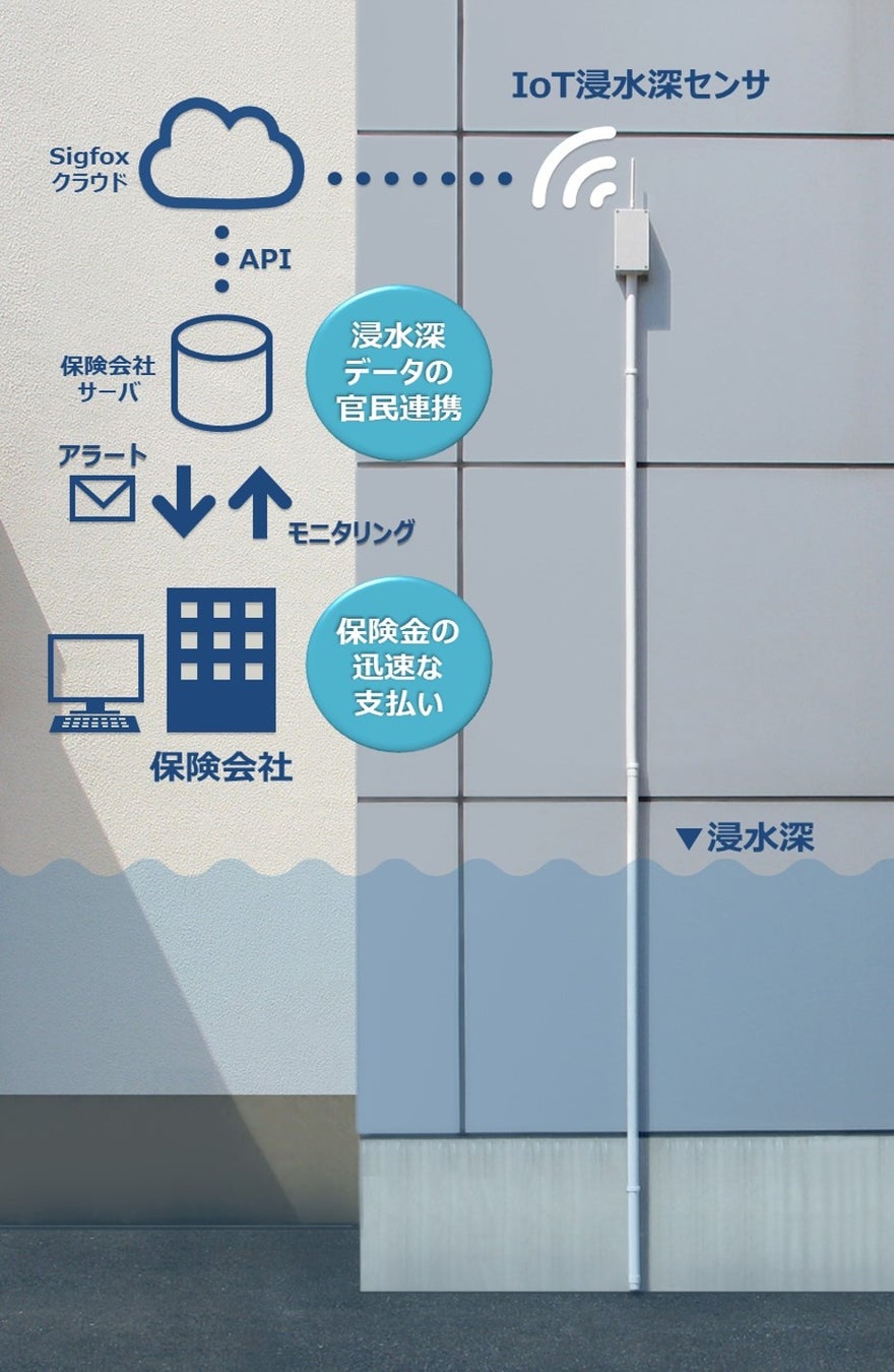 今般の共同開発では、当社ではLPWA Sigfox ネットワークを活⽤し、災害時に地上の浸⽔深を遠隔から把握できるIoT浸⽔深センサを新たに開発、保険⾦⽀払に使⽤できる浸⽔深データの取得およびクラウドを通じたデータ提供について検討してまいります。三井住友海上では、クラウドに送信された浸⽔深データのデータベース化およびアラートシステムの構築、浸⽔深データを活⽤した保険⾦⽀払いシステムの構築について検討してまいります。