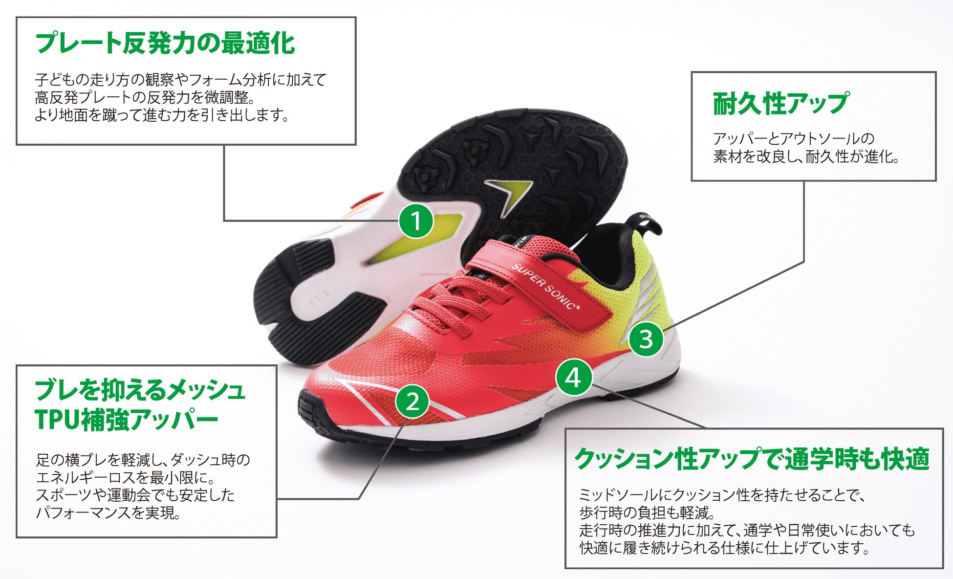 78%が速くなった子供靴「SUPERSONIC」に待望の新商品登場!7月18日より全国にて販売開始