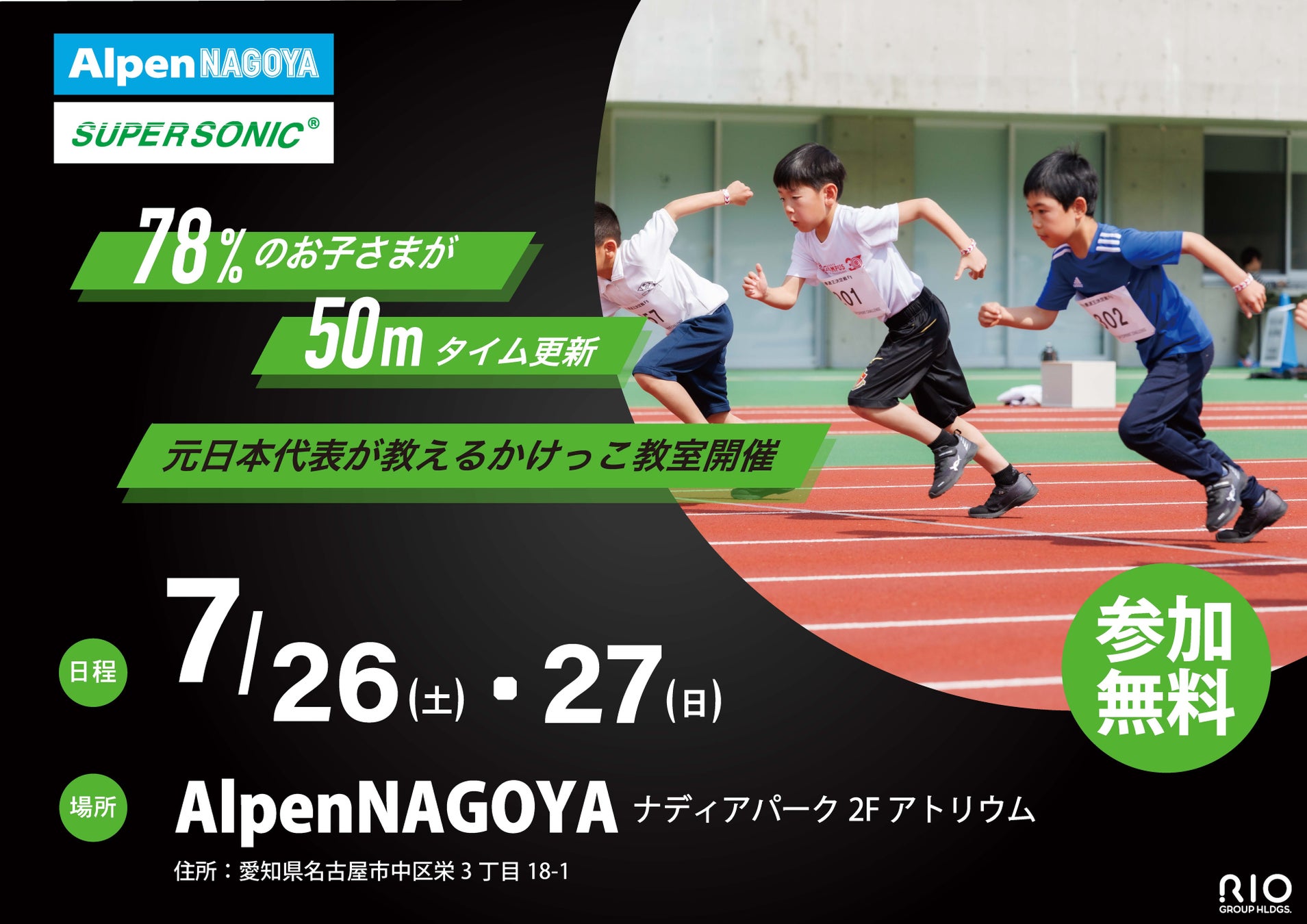 さらに今回、新商品発売を記念して、7月26日(土)・27日(日)の2日間、AlpenNAGOYAにて「かけっこ教室」を開催します。