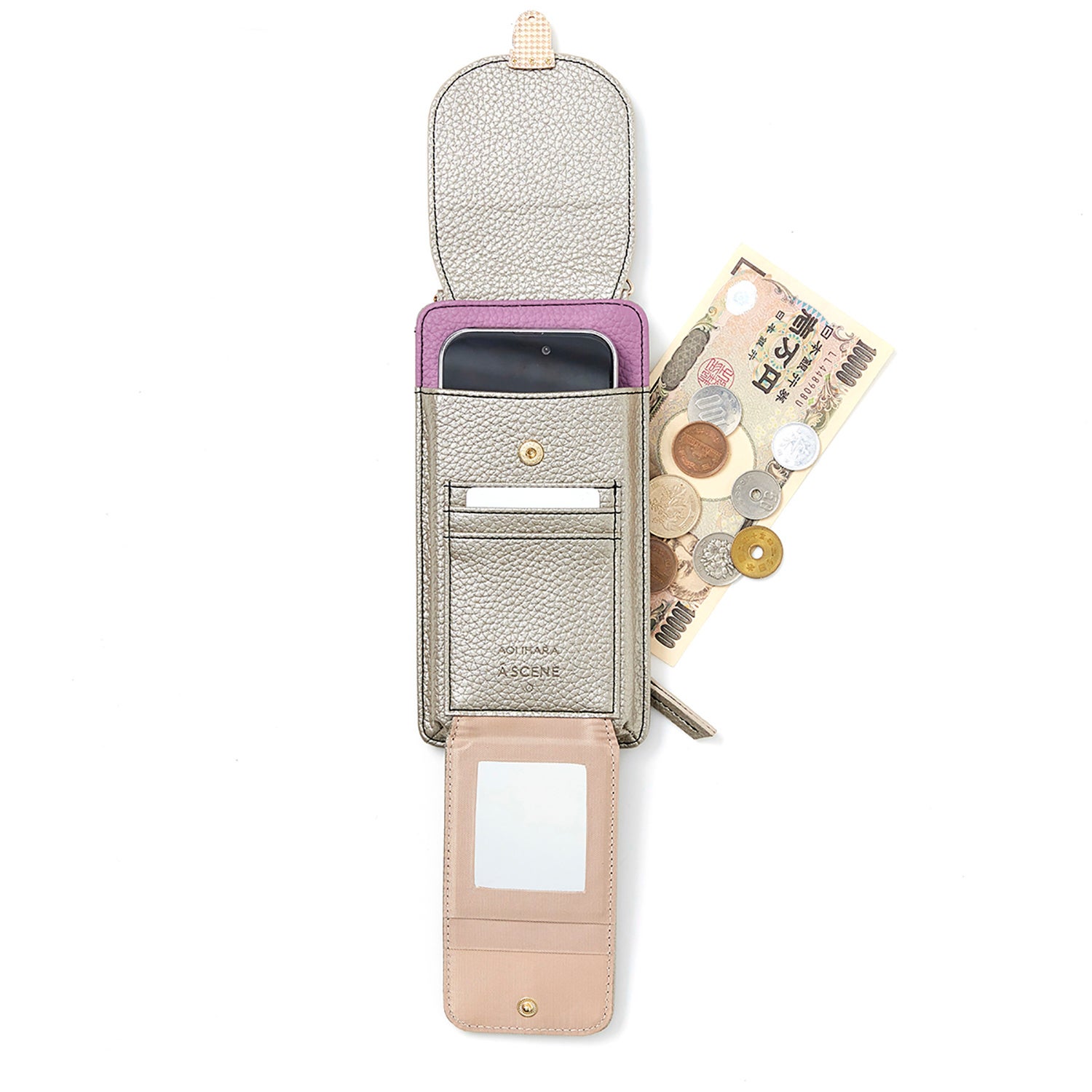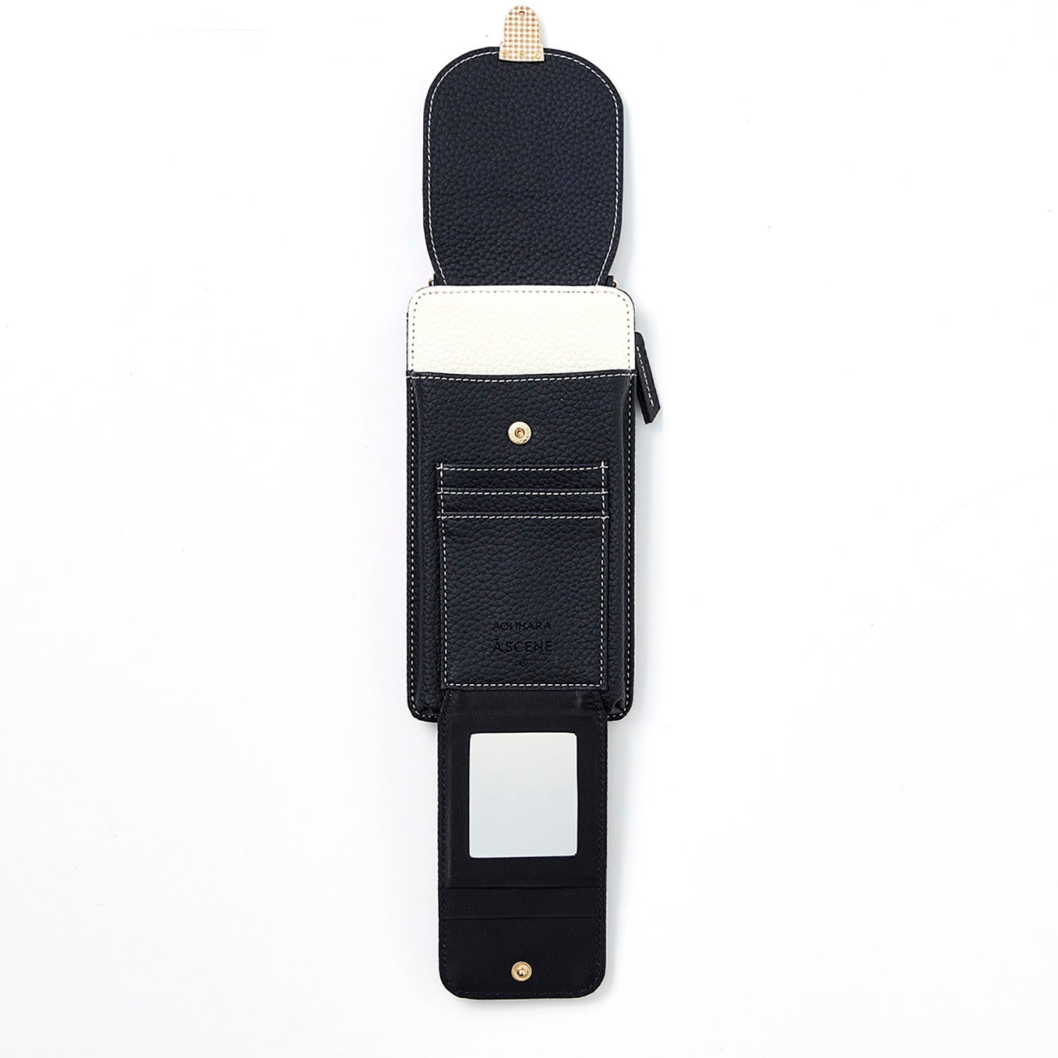AOI. ミラー・ウォレット・カードケースをドッキングして1stモデル同様にファッション性、機能性を充実させたところです。