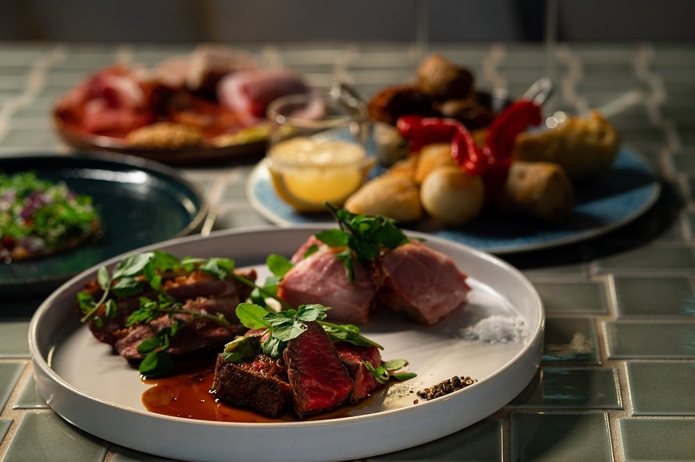 <5段目> シャルキュトリーの盛り合わせ/和牛タリアータ サマートリュフ/お野菜のピクルス
