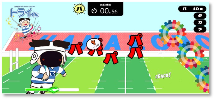 ◆展示(終日): 万博会場内のフューチャーライフビレッジ(FLV)にある「TEAM EXPOパビリオン」展示ブース(TE2)にて、PaTaKaRUSH®の多彩なコラボレーションステージを展示いたします。来場者の皆様は、展示ブースにて実際にアプリを体験し、楽しく「くちトレ」に挑戦いただけます。展示されるコラボステージは、企業3ステージ、自治体4ステージ、大学2ステージ、歯科医師会2ステージと、豊富なバリエーションで、各パートナーの地域性や特徴を活かしたユニークな内容となっています(次項)。プレイヤーはスマホのインカメラを使用することで、自治体のゆるキャラや萌えキャラ、さらには妖怪など、さまざまなキャラクターになりきり、「パ」「タ」「カ」「ラ」の連続発声で文字を飛ばしてアイテムを獲得する、世界で初めて音声認識と画像認識を同時利用した画期的なゲームシステムを体験できます。