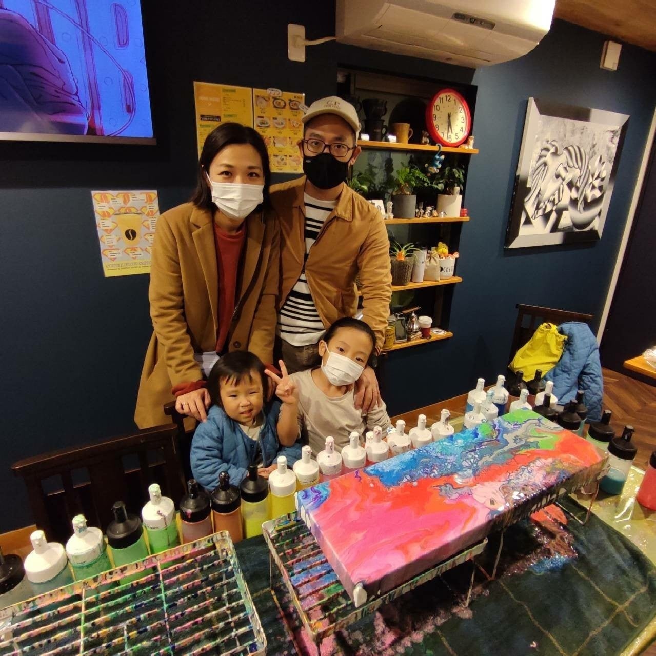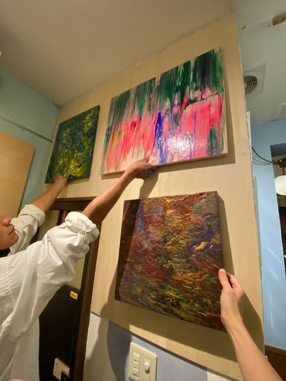 この地でのホテル開業にあたり、田辺市ゆかりのアーティスト・能登正人さんを講師に迎え、体験型のアートワークショップを開催することとなりました。能登さんは、アクリル絵の具の流動性を使って描く「ポーリングアート」というスタイルの絵画を制作されています。