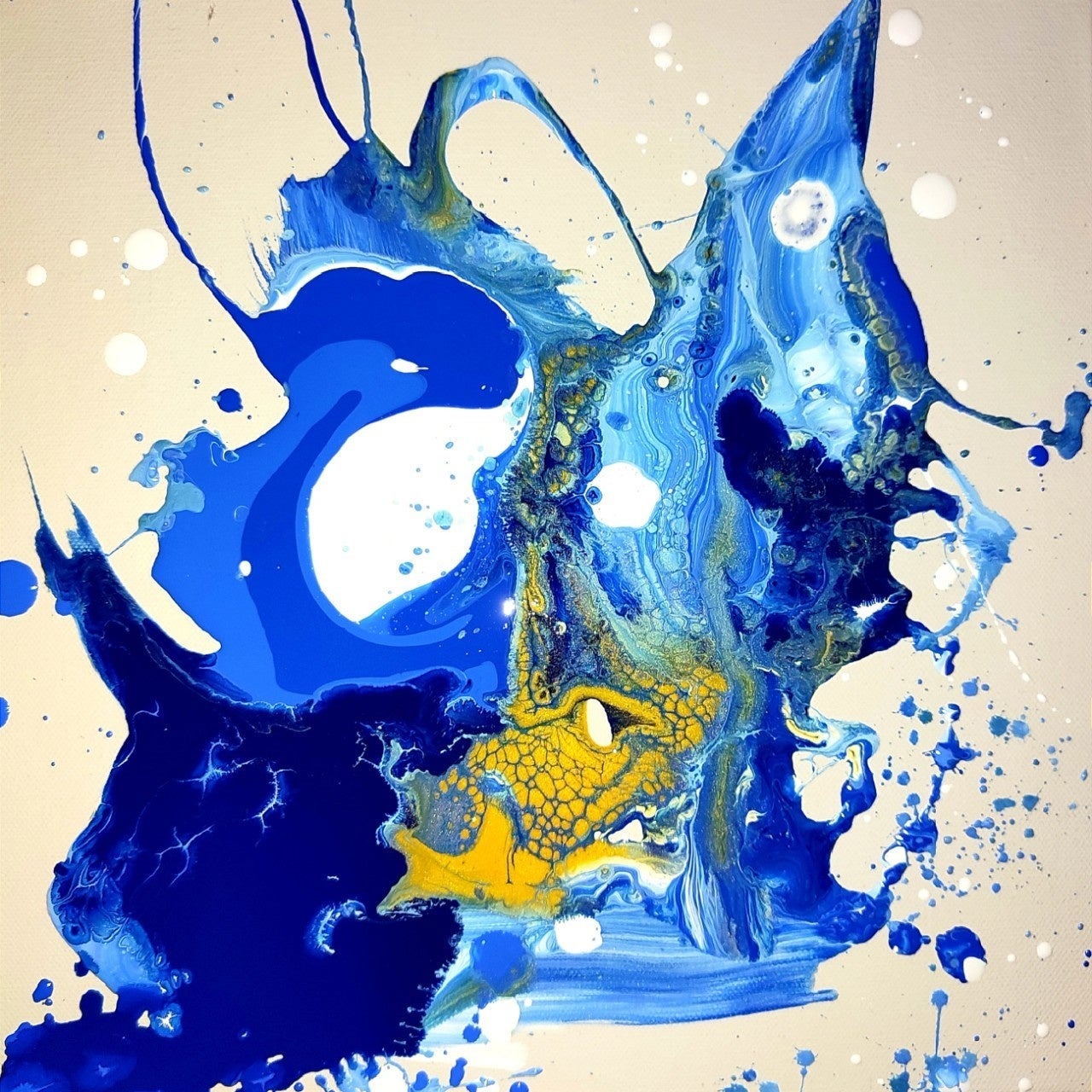 ポーリングやドリッピングを用いた技法で、キャンバスと自分自身を一体化させる感覚を元に、様々なエネルギーや心の中を表現。モデル、イベント企画や運営、サッカークラブ「南葛SC」の選手と、様々な分野での表現の幅を広げている。