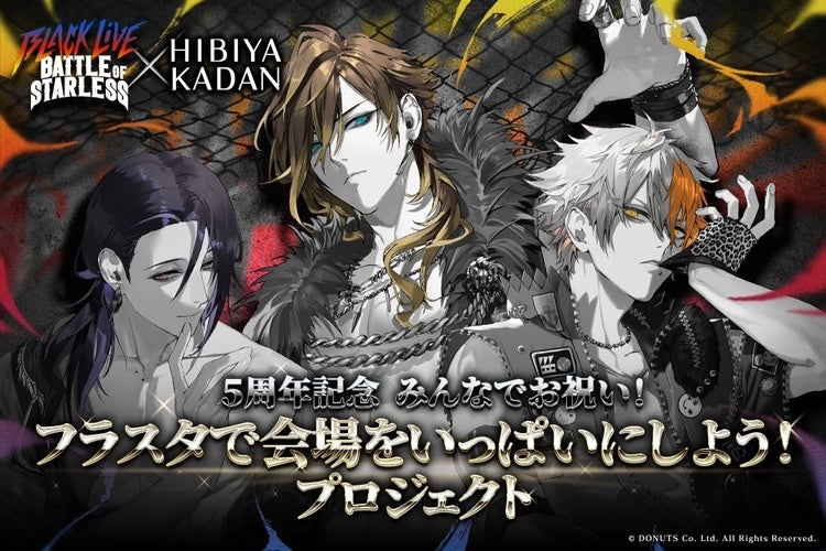 株式会社日比谷花壇(本社:東京都港区、代表取締役社長:宮島浩彰)は、株式会社DONUTS(東京都渋⾕区、代表取締役:⻄村啓成)のワルメン応援&リズムゲーム『ブラックスター -Theater Starless-』とコラボレーションし、2025年1月に開催される年始ライブ「BLACK LIVE -Battle of Starless-」において、ファンの応援でライブ会場にフラワーフォトスポットをつくるクラウドファンディング『5周年記念みんなでお祝い!フラスタで会場をいっぱいにしよう!プロジェクト』のご支援金申込受付を、2024年11月21日(木)から開始します。