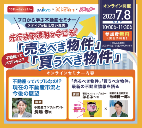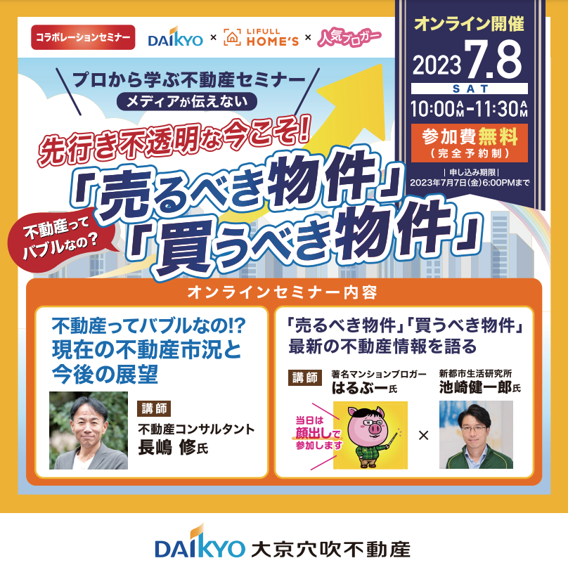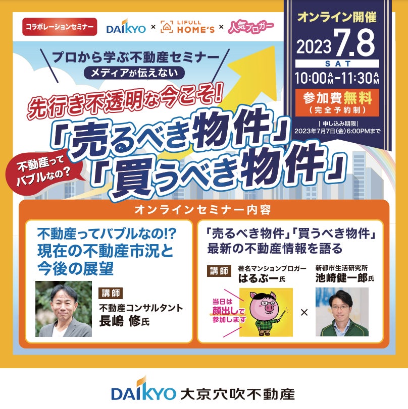 累計“1,500名以上”のお申し込みをいただいた大京穴吹不動産&ライフルホームズコラボセミナー開催〜不動産専門家、著名マンション管理ブロガーが最新の不動産を徹底解説〜