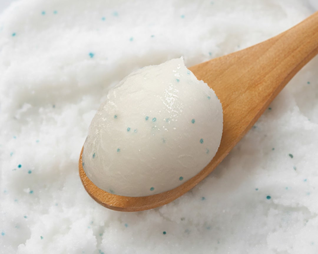 スクラブ製品に多いジャータイプ(広口容器)特有の「水が入って不衛生」「開け閉めが面倒」といった悩みに着目。最後まで中身に触れず、お風呂場でも衛生的に使えるチューブタイプを採用しました。濡れた手でも使いやすい、こだわりのスマート設計です。