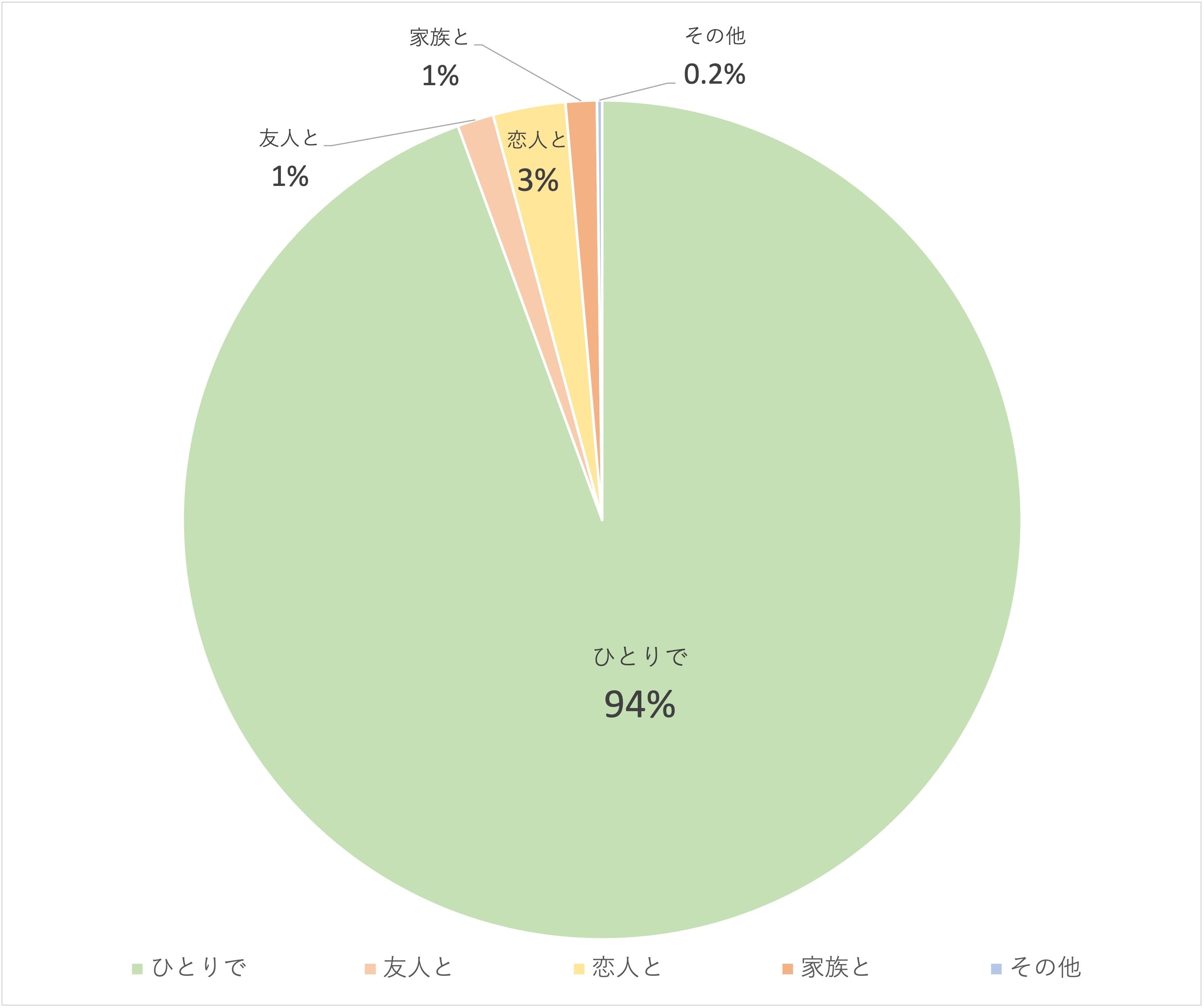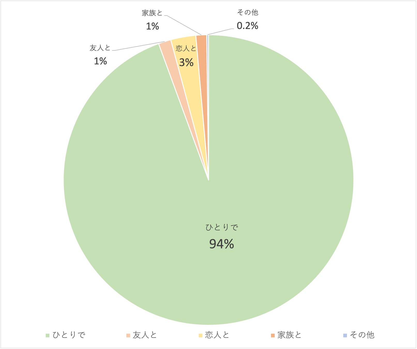 「Q10.誰と動画を見ることが多いですか?(N=501)」という質問を行ったところ、「ひとりで」と回答する方が圧倒的に多く、全体の94%となった。