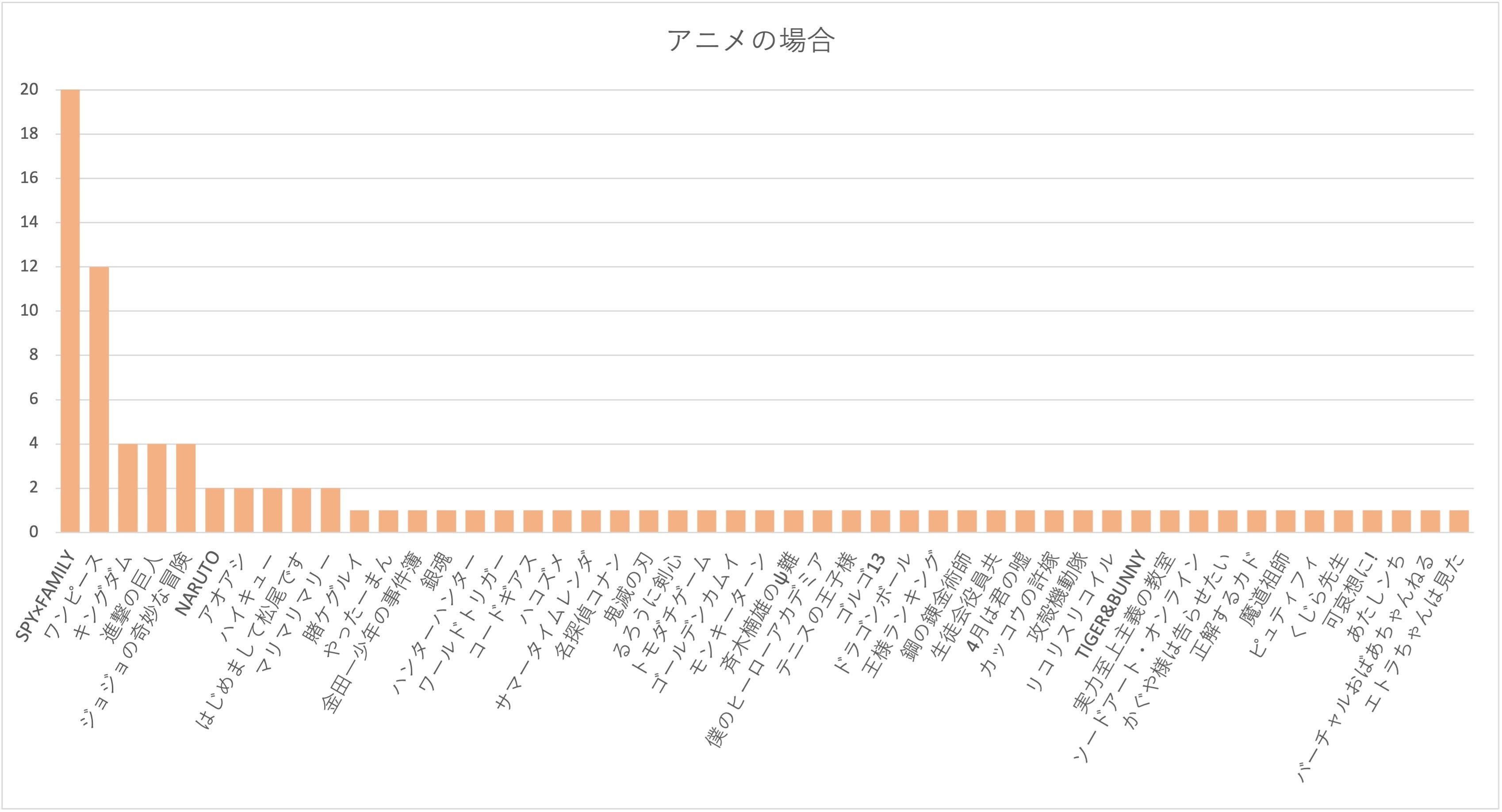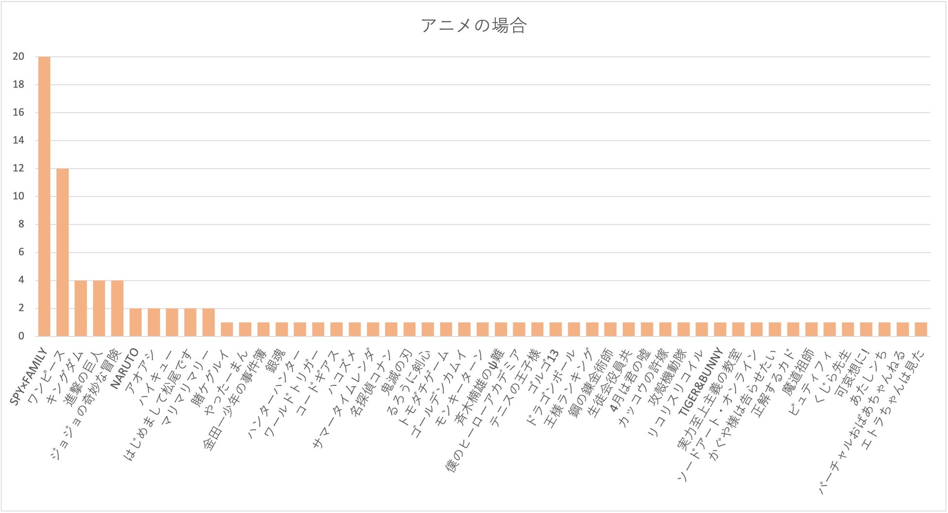 回答結果は十人十色であったが、ジャンルとしては「アニメタイトル」や「ユーチュブチャンネル」を記載する方が多かった。