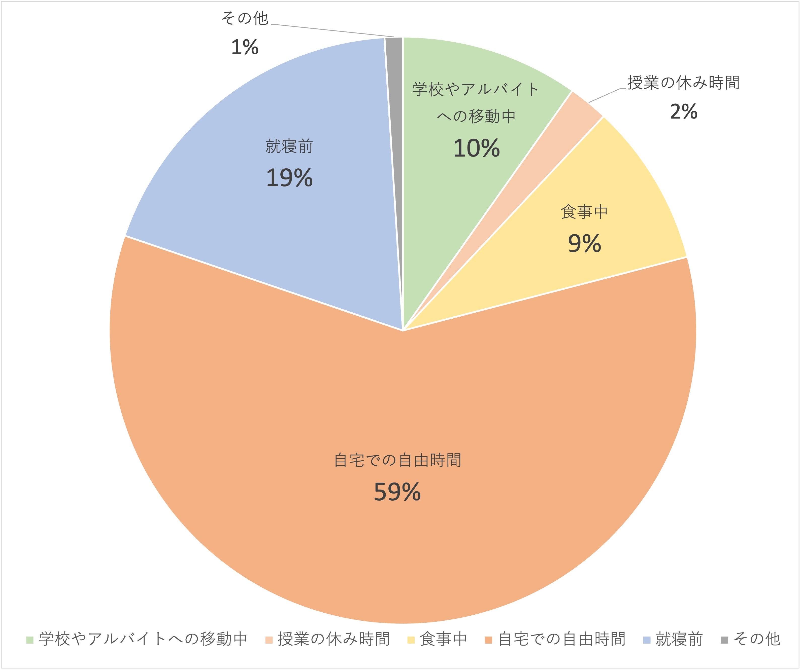 結果は、自宅での自由時間という回答が多く集まった。そのほか、就寝前や移動時間、食事中や休憩中など、分散的に意見が集まった。