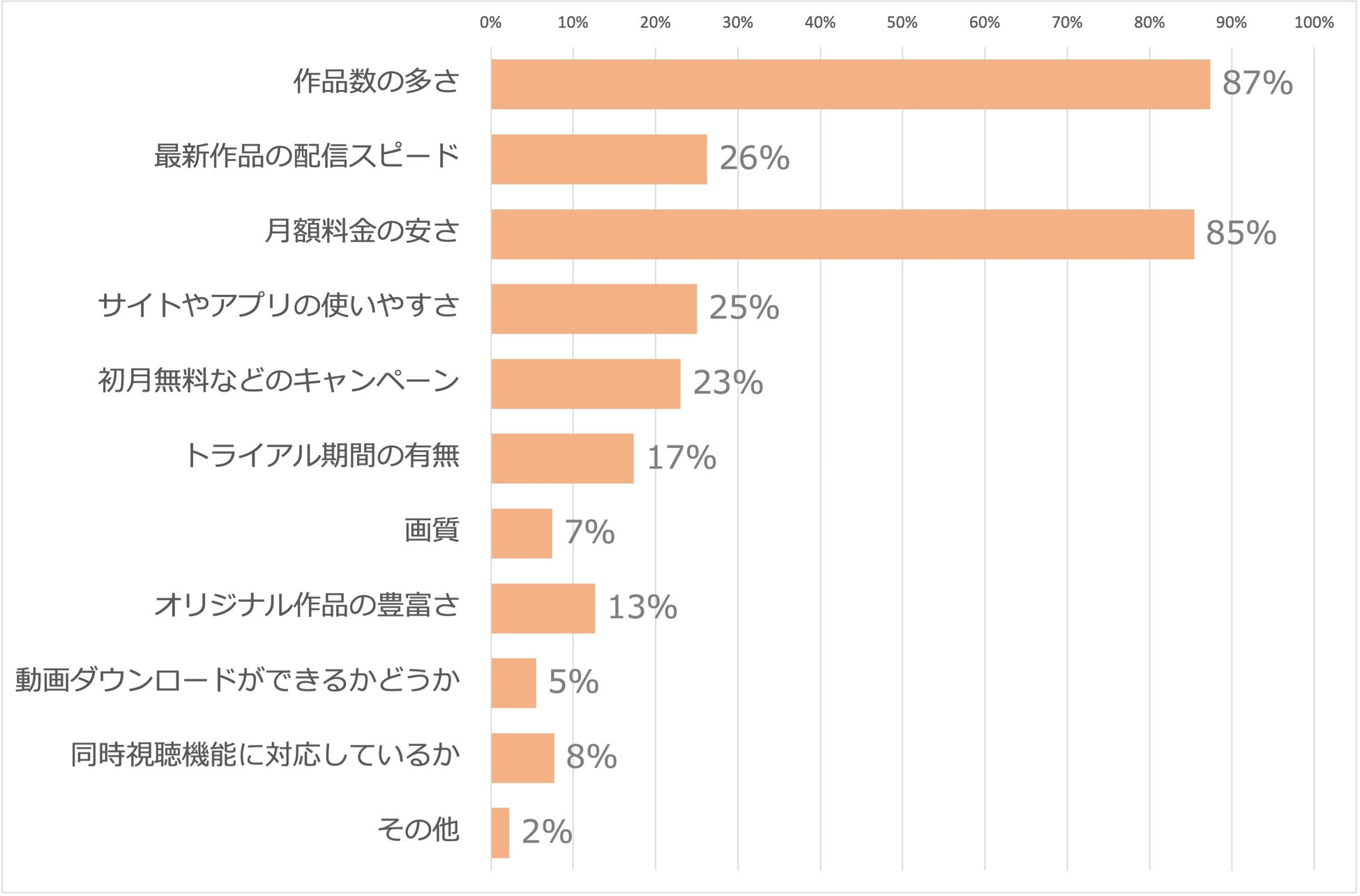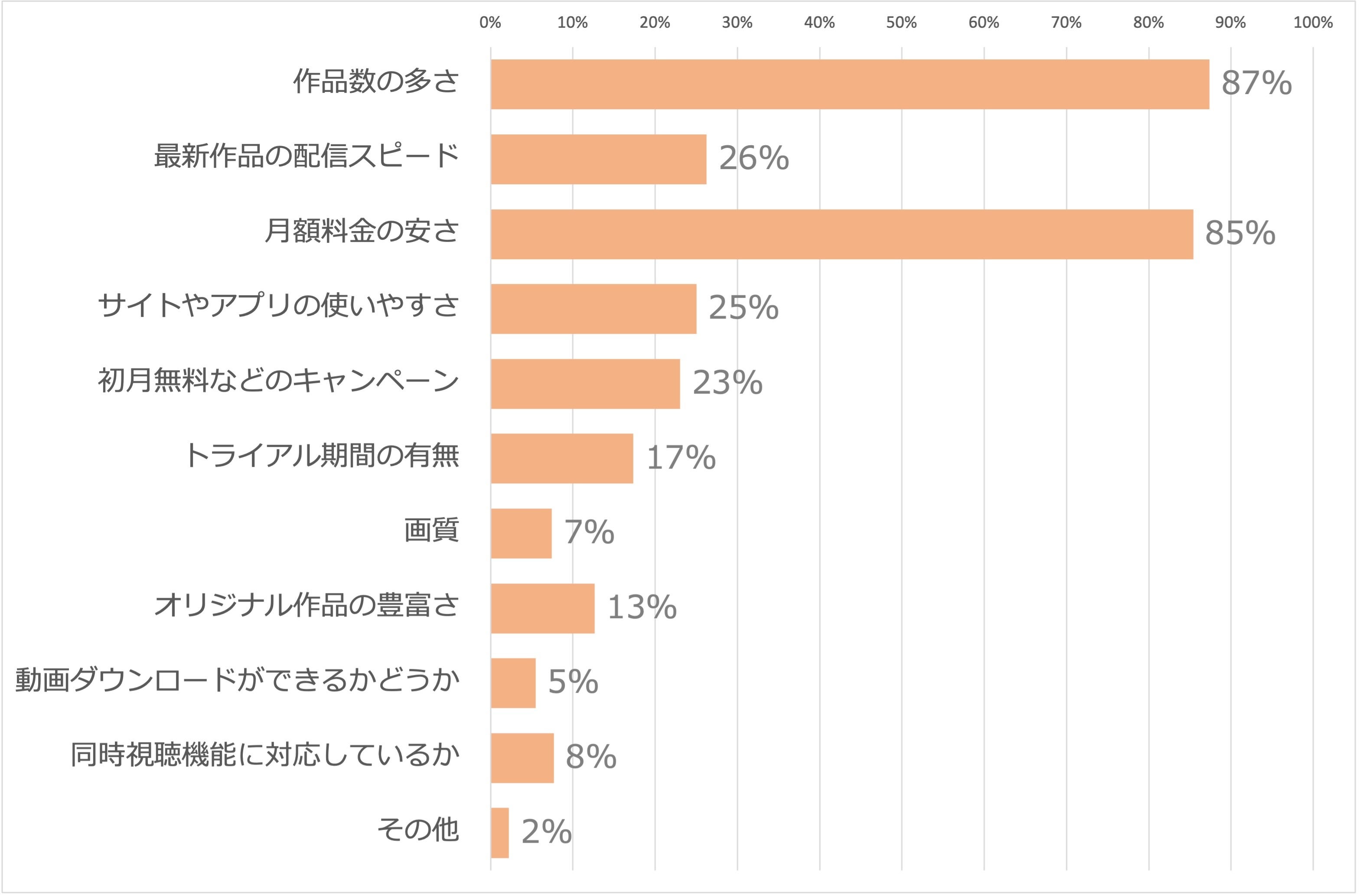 「Q4.定額動画配信サービスを選ぶ際に重視していることは?(N=404)」という質問で、若年層が定額動画配信サービスを選ぶ基準について調べてみた。