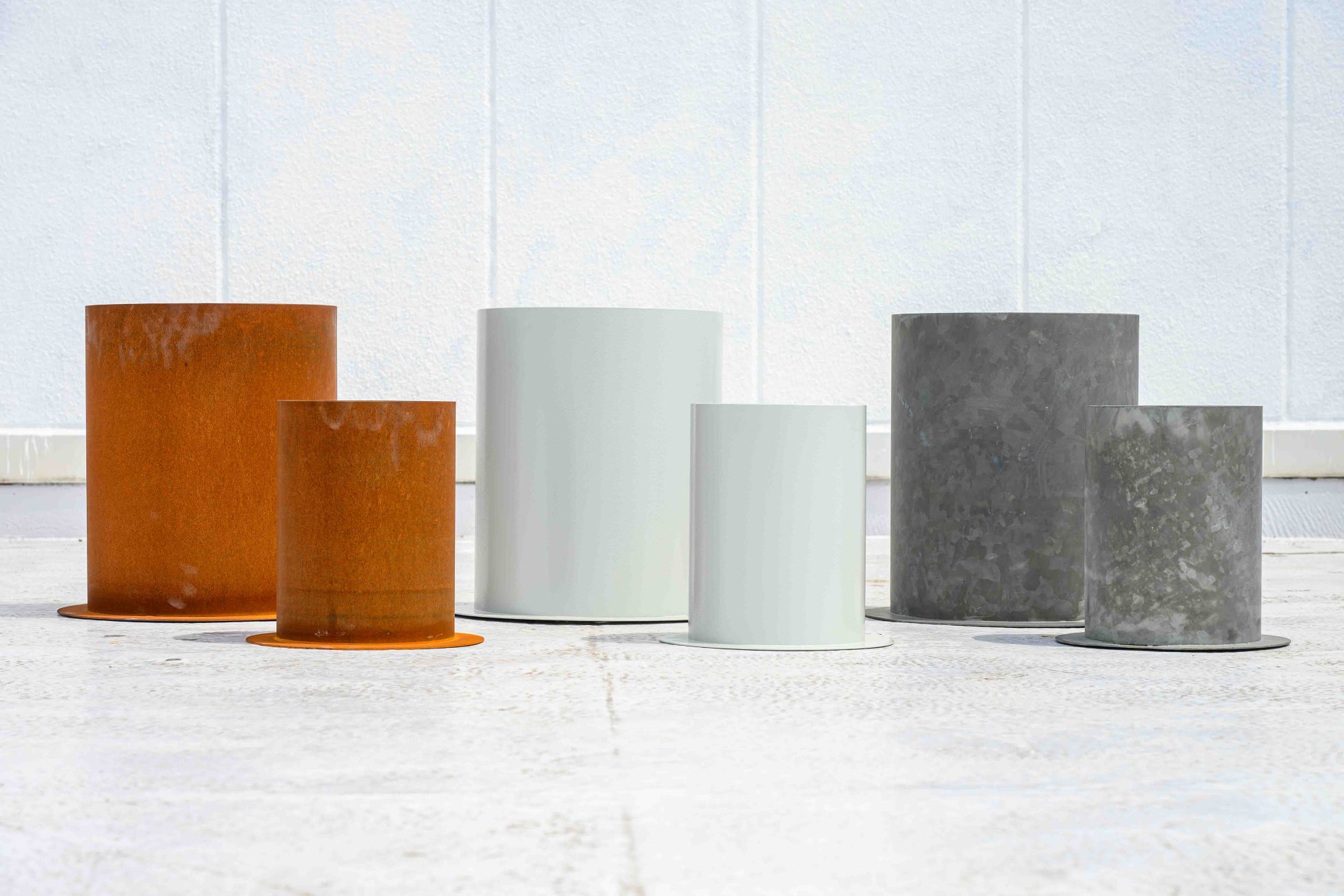 ジンクグレー:亜鉛メッキ塗装を施したことで、先に亜鉛が溶け出して錆を防ぐ“犠牲防食作用”が働き、表面に傷がついても鉄をしっかり守ります。表面には自然な模様が現れ、屋外だけでなくインテリアにもなじむ質感です。