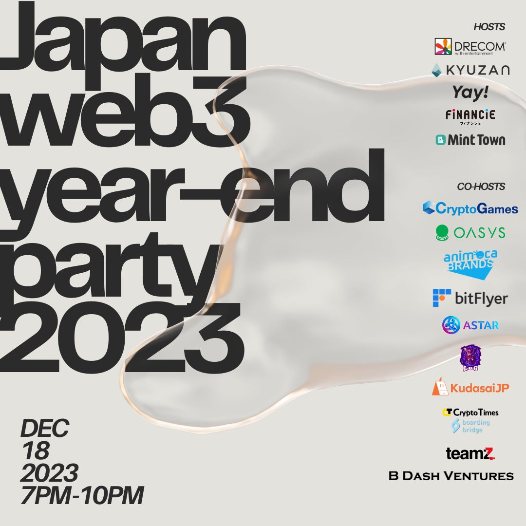 12月18日に開催される「Japan web3 year-end party 2023」に、新たにweb3をリードする企業10社の共催が決定!