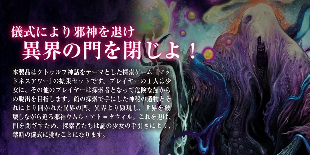 amazon&直販にて販売開始!クトゥルフ神話をテーマとした狂気と疑心のボードゲーム[マッドネスアワー]待望の拡張セット【マッドネスアワー・アナザー異界の門】が"やのまん"からついに販売開始です!