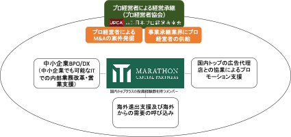 マラトンキャピタルは投資会社では国内最大の経営者プラットフォーム(日本プロ経営者協会)を運営し、数多くの中小企業の価値向上の為の後継者発掘支援、経営支援を行います。