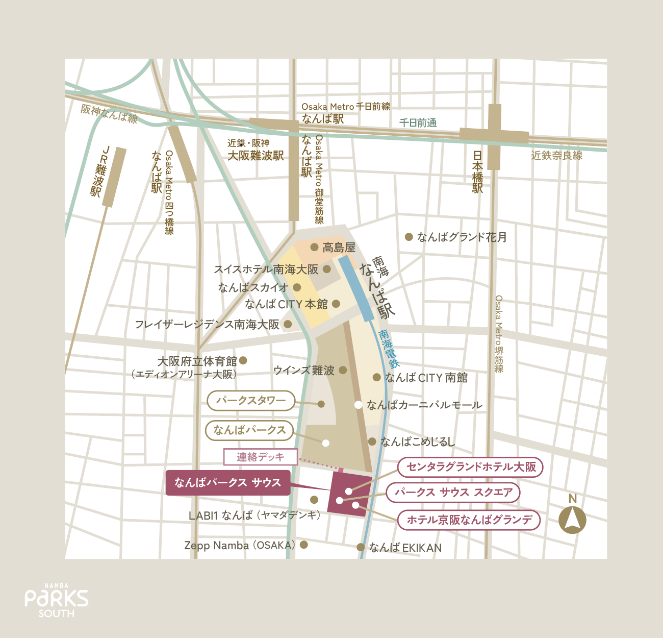➤なんばエリアにおける「なんばパークス サウス」の位置づけ