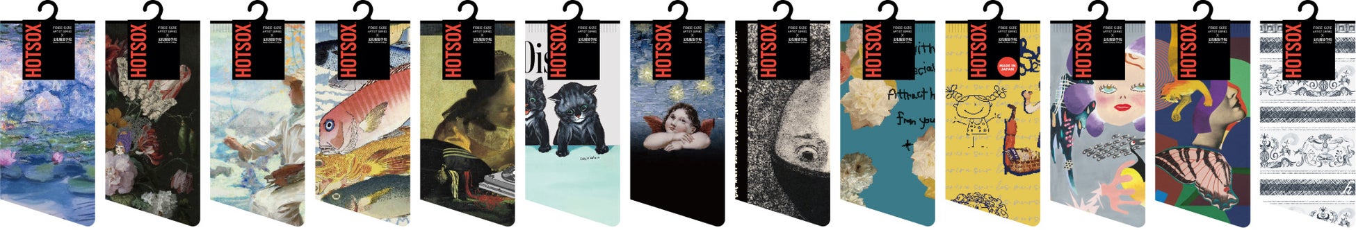 1971年、米国ニューヨーク発祥のアートソックス。アートを靴下の絵柄とするキッチュなソックスはその後多くのフォロワーを生むオリジネイターになりました。日本ではそのラインナップの一部、有名絵画をもとにしたアーチストシリーズを中心に展開。ロフトPLAZAを始め美術館などで販売し“HOTSOX×メトロポリタン美術館”シリーズは米国メトロポリタン美術館で販売し好評を博しています。