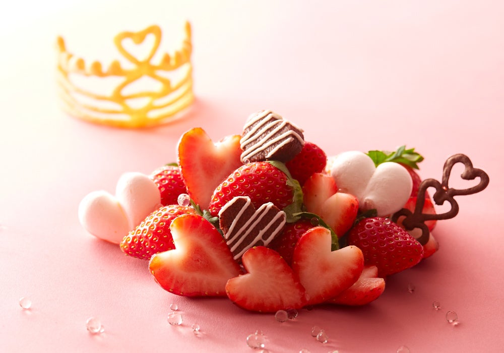 バレンタインムードを盛り上げるかわいいハート型にカットした苺。フルーツをフォンデュできるチョコレートやトリュフチョコ、ガナッシュなど、バレンタインにちなんだチョコレートを中心としたメニューが特長の「バレンタイン限定メニュー」です。その他に、新宿高野で昭和40年代から販売を続けるロングセラー商品の「アップルパイ」もお召し上がりいただけます。自然の宝石とも言える珠玉のフルーツの芳醇な味わいと共に「タカノフルーツティアラ」での上質なひとときをご堪能ください。