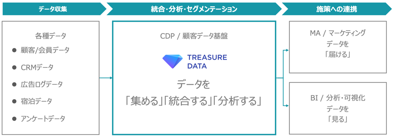 インキュデータは、トレジャーデータ株式会社が提供するカスタマーデータプラットフォーム「Treasure Data CDP」を活用し、湯快リゾートが保有する顧客データや宿泊データ、各チャネルデータをはじめとした各種データの統合を支援してきました。データを読み解きお客さまへの理解を深めることで、お客さまに最適なコミュニケーションを行い、顧客満足度の向上を支援しています。