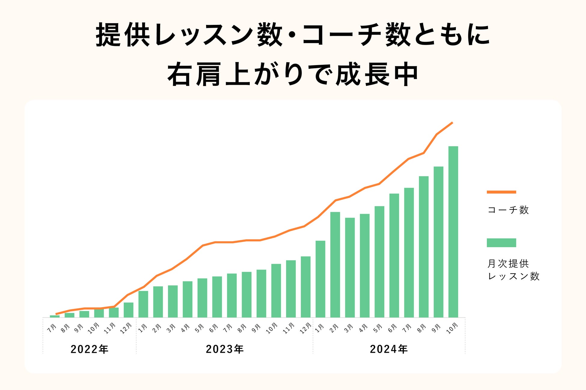 へやすぽアシストは、2022年7月のサービス利用開始以降、提供レッスン数・コーチ数共に右肩上がりに成長しています。