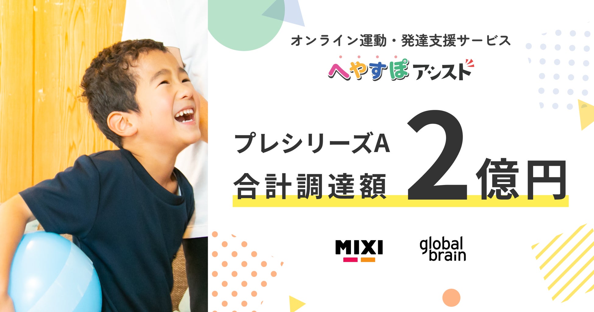 今すぐ・全国どこにいても受けられる、オンライン運動・発達支援サービス「へやすぽアシスト」を運営するPAPAMO株式会社(本社:東京都渋谷区、代表取締役:橋本咲子)は、株式会社MIXIおよびグローバル・ブレイン株式会社とShinhan Venture Investment Co.,Ltd.が共同で運営する新韓-GBフューチャーフロー投資事業有限責任組合より、プレシリーズAラウンドのファイナルクローズとして総額2億円の資金調達を行ったことをお知らせします。
