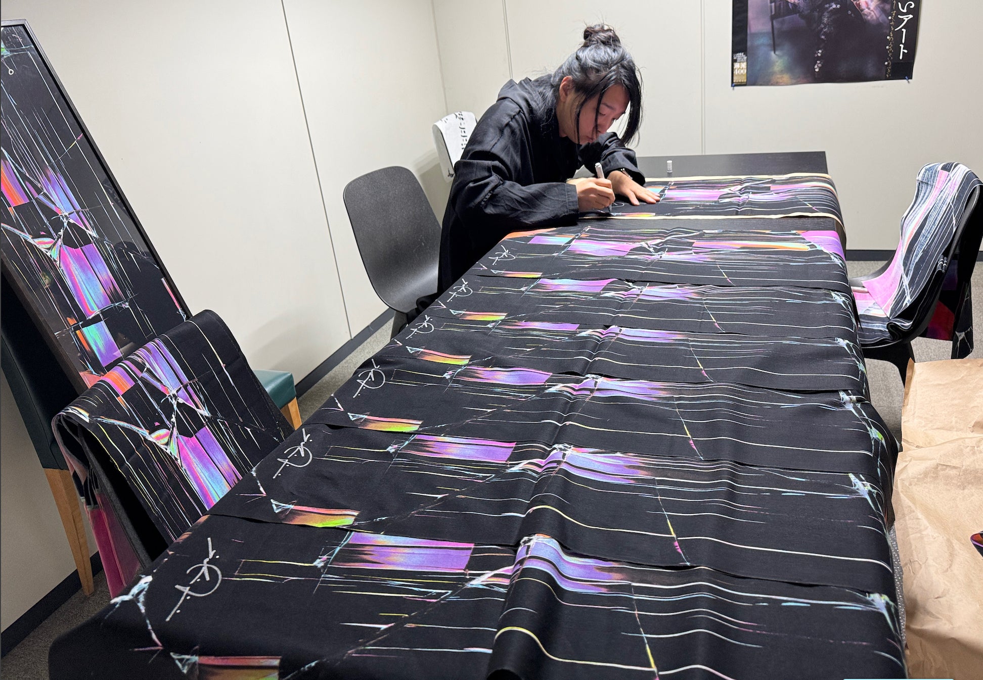さらに、この特別な手ぬぐいには、落合氏が一枚一枚直筆でサインを入れ、「永楽屋」の文字刺繍が施されています。この仕様により、伝統と革新が融合した唯一無二の商品となっています。
