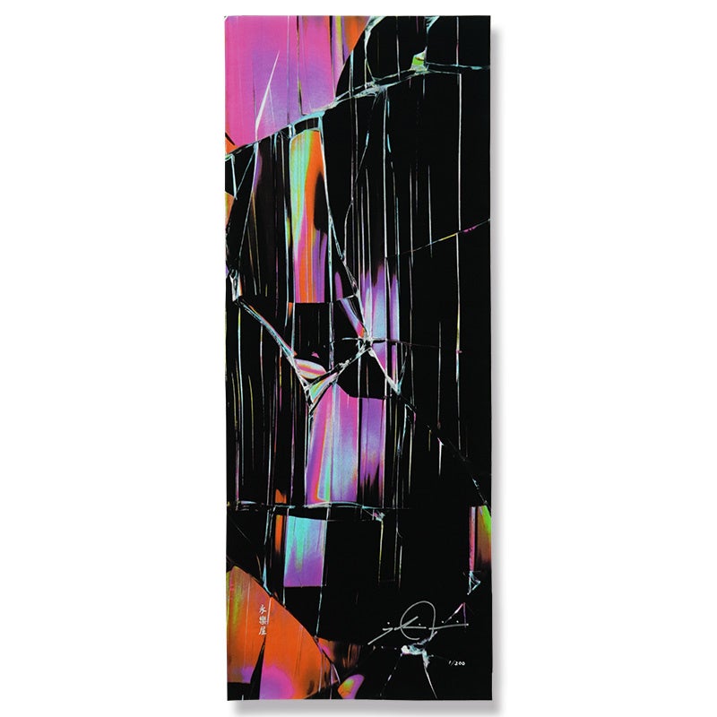 “割れた液晶の夢を見る手拭”という荒唐無稽なイメージを起点とした作品で、江戸時代の人々が常に持ち歩いていた手ぬぐいと、現代人が常に持ち歩いているスマートフォン。