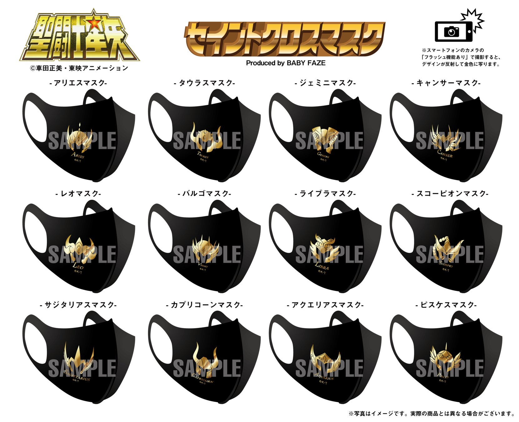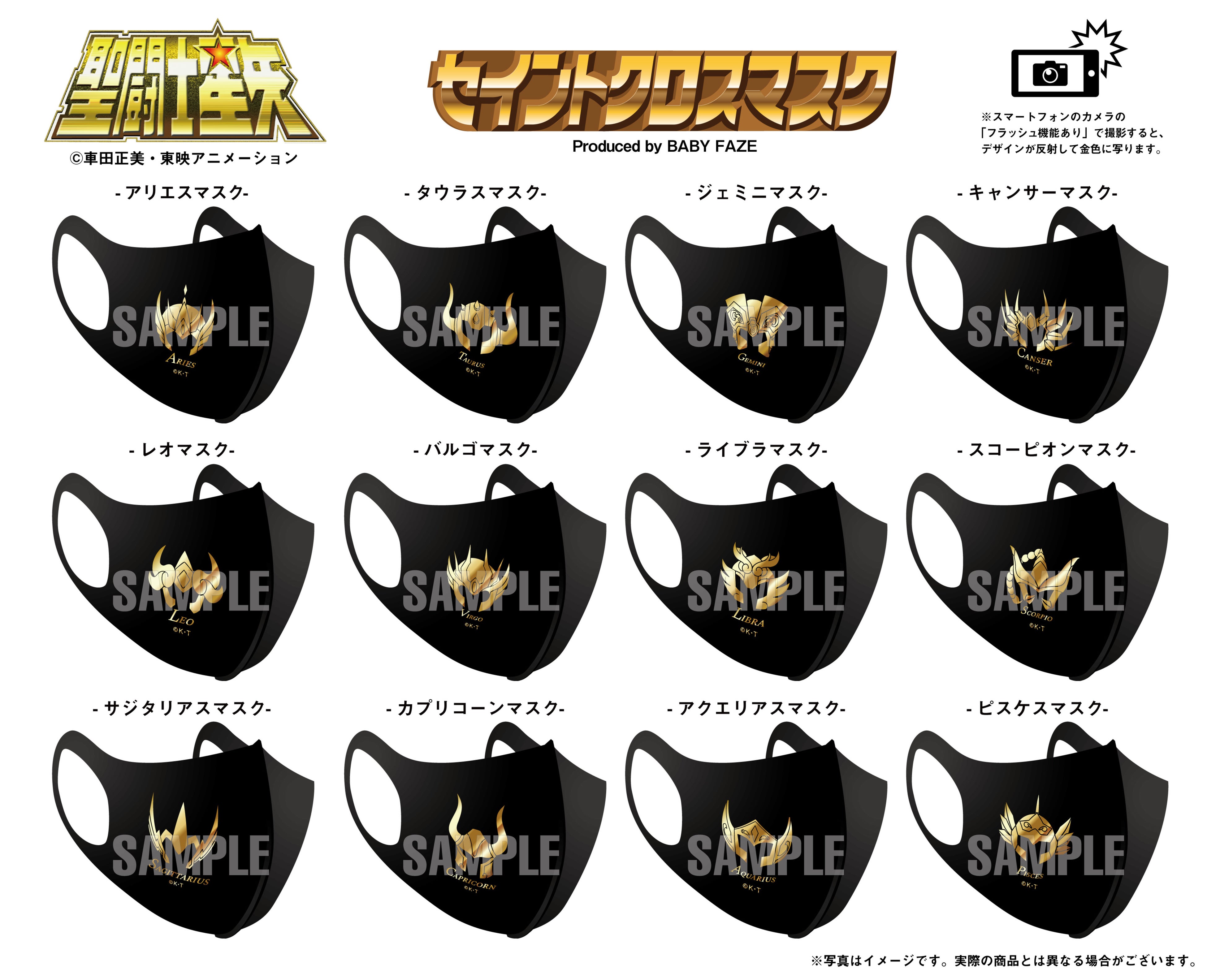 「聖闘士星矢」より黄金聖闘士12人のマスクパーツをモデルにしたポリエステル製のマスクが発売!!
