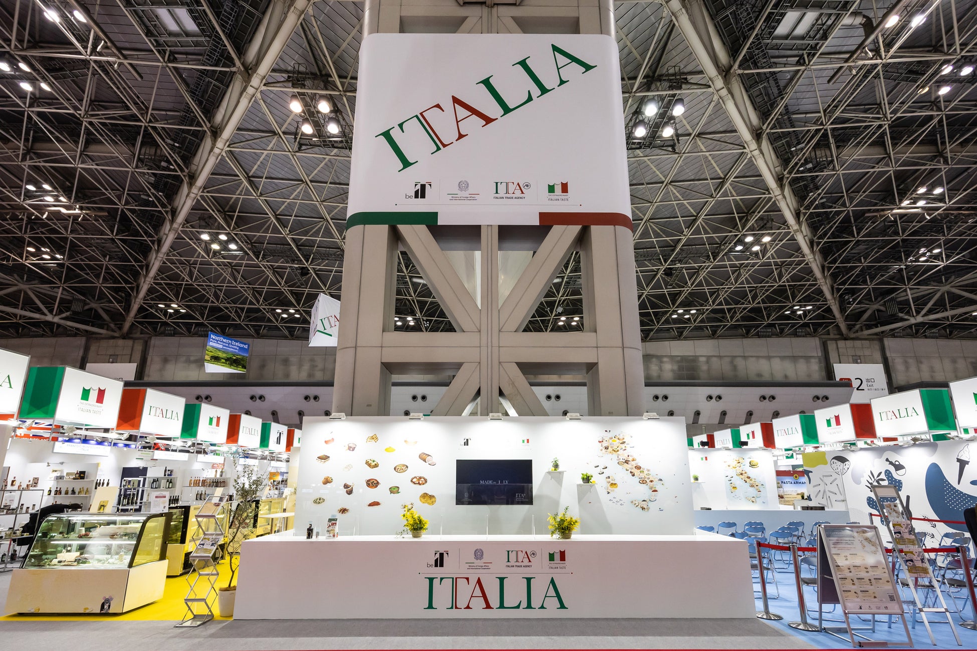 海外パビリオンで最大規模を誇るイタリア館は昨年よりさらに規模を拡大し、約190のイタリア企業が自慢の製品を出展します。オリーブオイル、ワイン、パスタ、チーズといったイタリアを代表する食品にもオーガニックやグルテンフリーなど近年の需要に応えられるラインが増えています。バルサミコやトリュフ加工品、パネットーネやティラミスキット、クラフトビール、クラフトジン、水産加工品や冷凍ピッツァなどバラエティの豊富さにご注目ください。